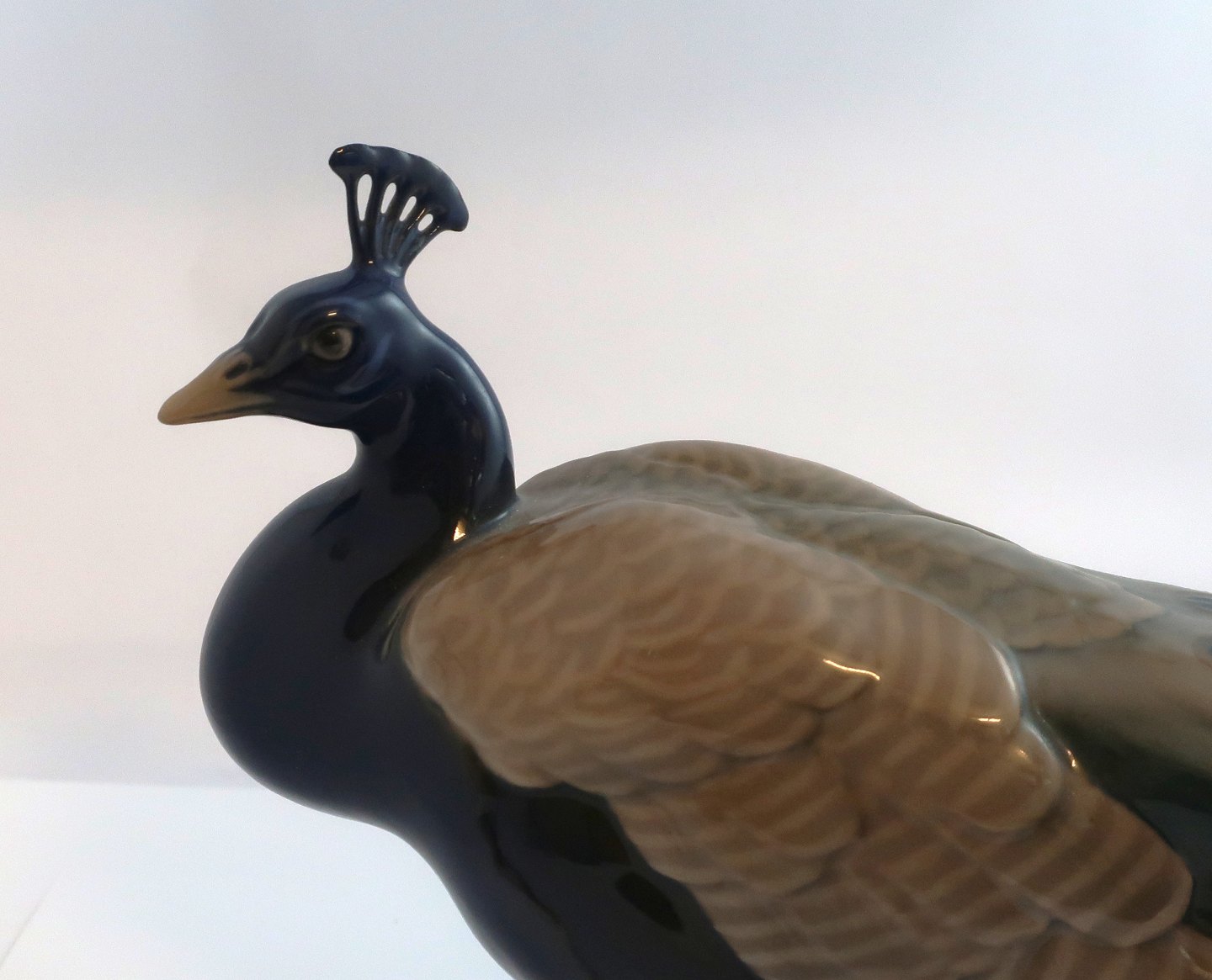 Bing & Grøndahl. Porcelænsfigur. Påfugl. Model 1628. Længde 40 cm. Højde 18,5 cm. (1 sortering).
