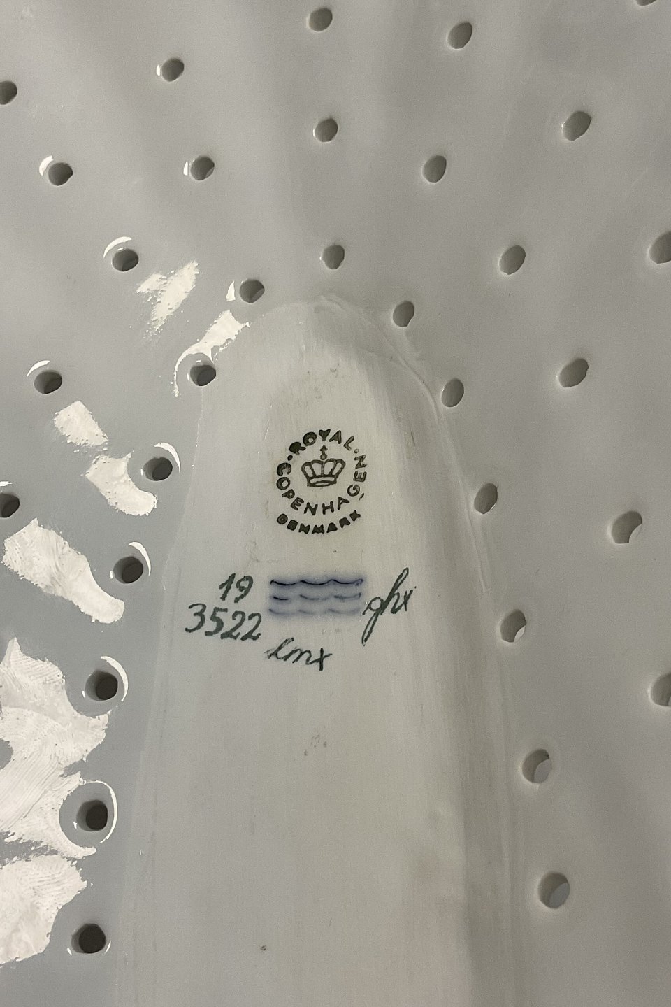 Royal Copenhagen Flora Danica Fiskerist til fiskefad No 19/3522. Måler 36 cm / 14.17 inch