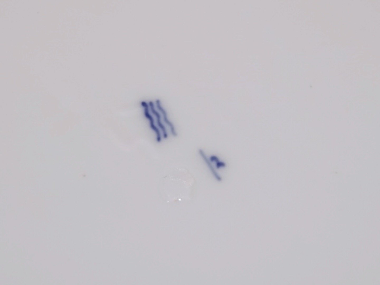 Royal Copenhagen Musselmalet Riflet, stort kagefad med sjældent set blade i relief.