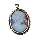 18 karat guldring med cabochonslebet turkis og blåt emaljemønster.