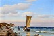 Neumann, Johan (1860 - 1940) Denmark: A fishing boat on the coast.