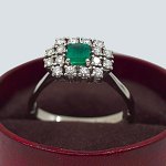 C. Antonsen; Ring i 14 kt. hvidguld prydet med diamanter og smaragd