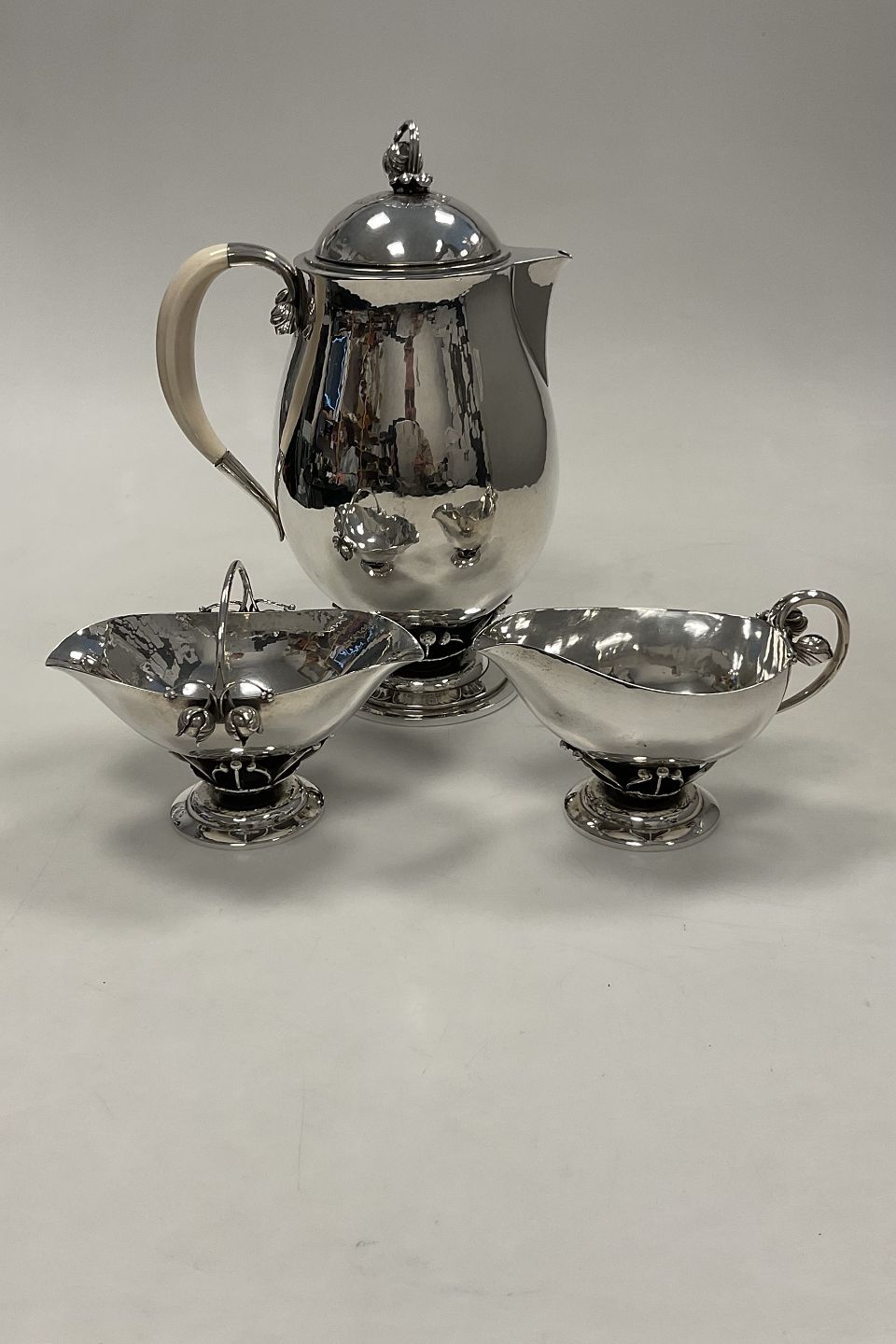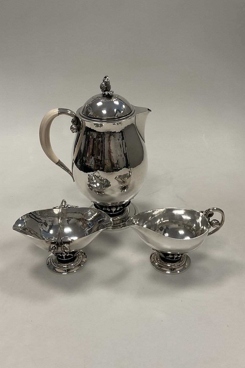 Georg Jensen Sterling Sølv Stor Kaffekande, sukkerskål og flødekande No. 235