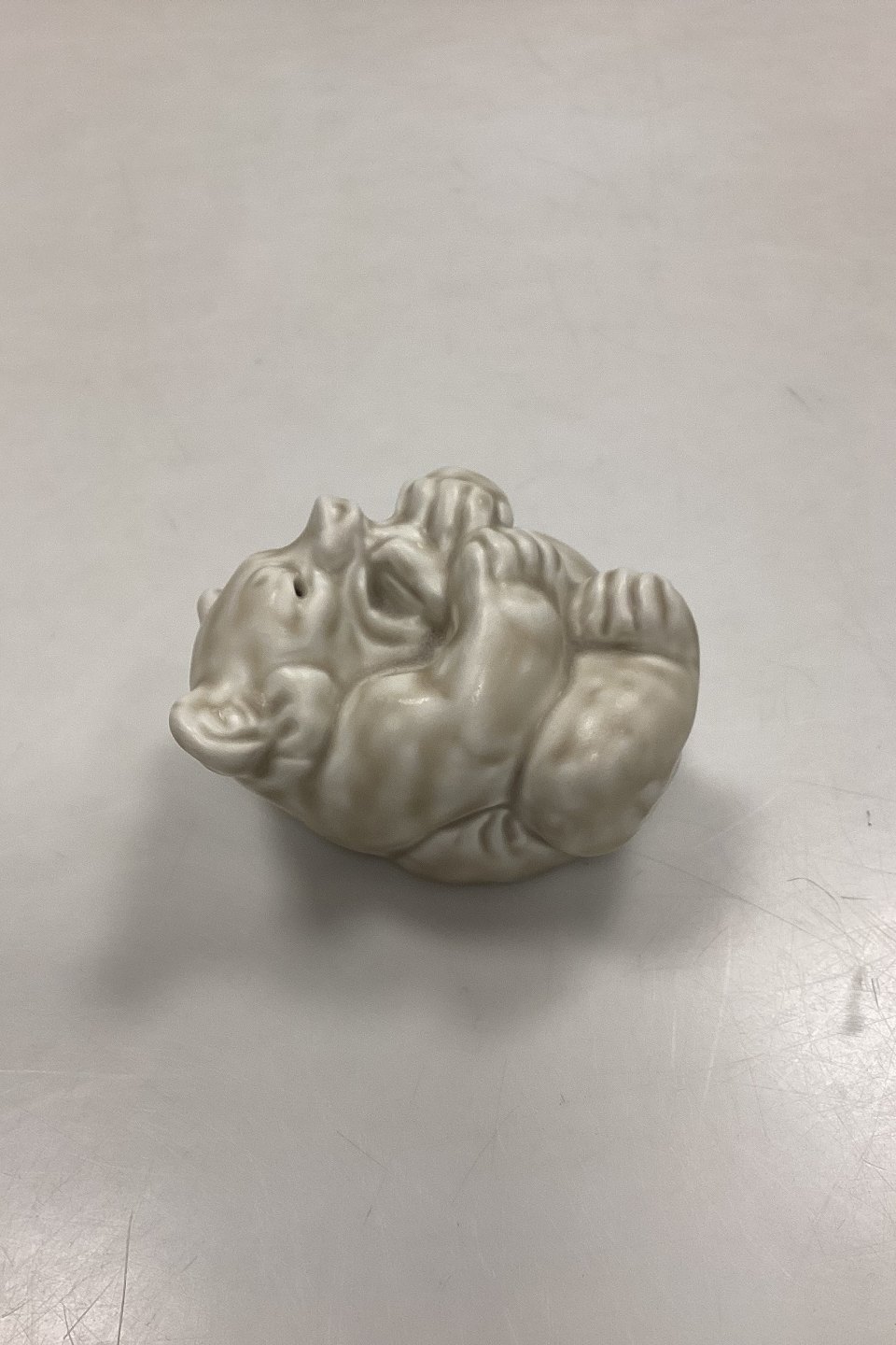 Royal Copenhagen Stentøjsfigur Hvid Bjørneunge No. 21434. Designet af Knud Kyhn. Mat glasur i hvidbeige nuancer.