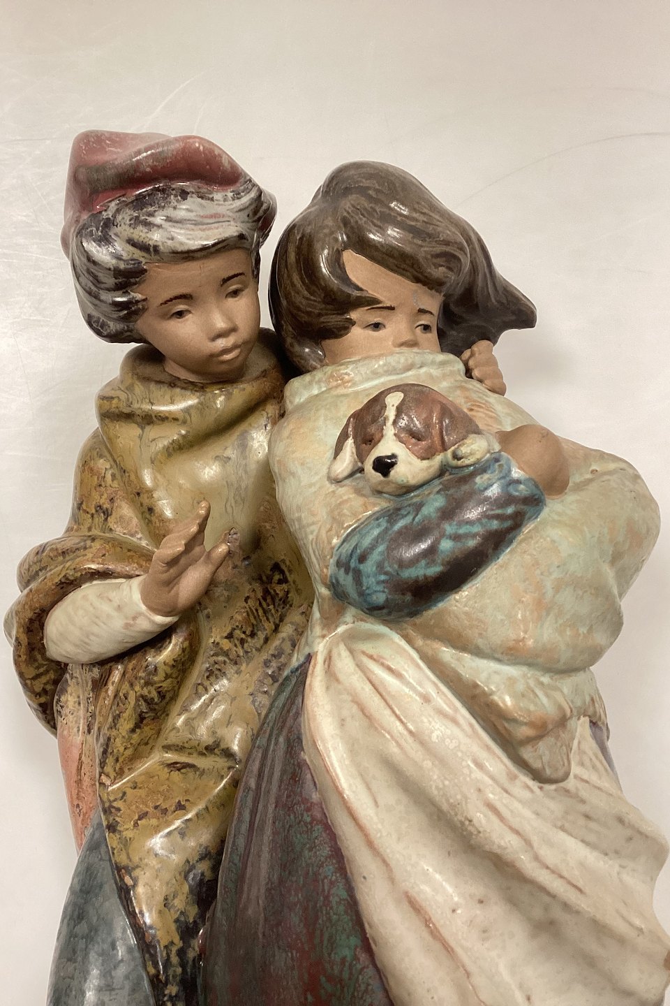 Lladro Stentøjsfigur af Pige og Dreng med Hund - Facing the Wind