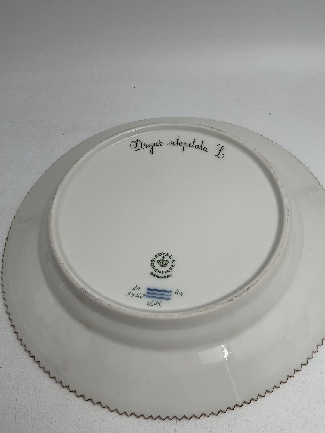 Royal Copenhagen Flora Danica Frokosttallerken No. 20/3550 Måler 22 cm. (8.66 inch) 1. Sortering. Latinsk navn: Dryas octopetala L