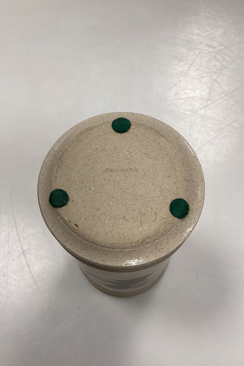 Kähler Keramik Vase med Æbler No. 811-18. Motiv i orange og brun på baggrund af råhvidt stentøj.