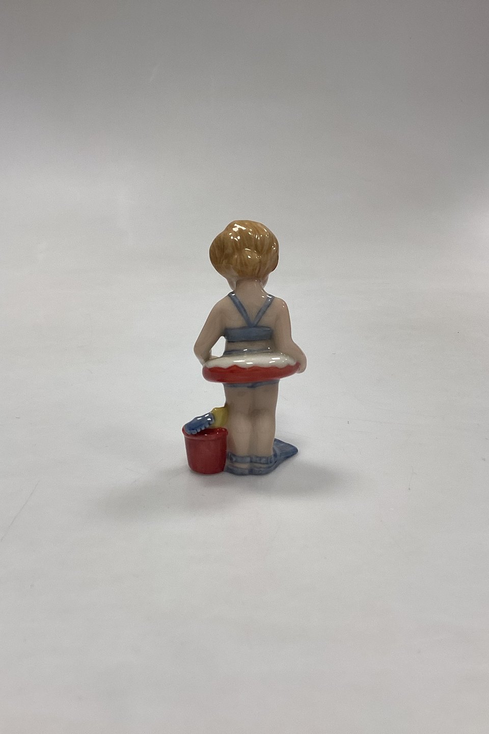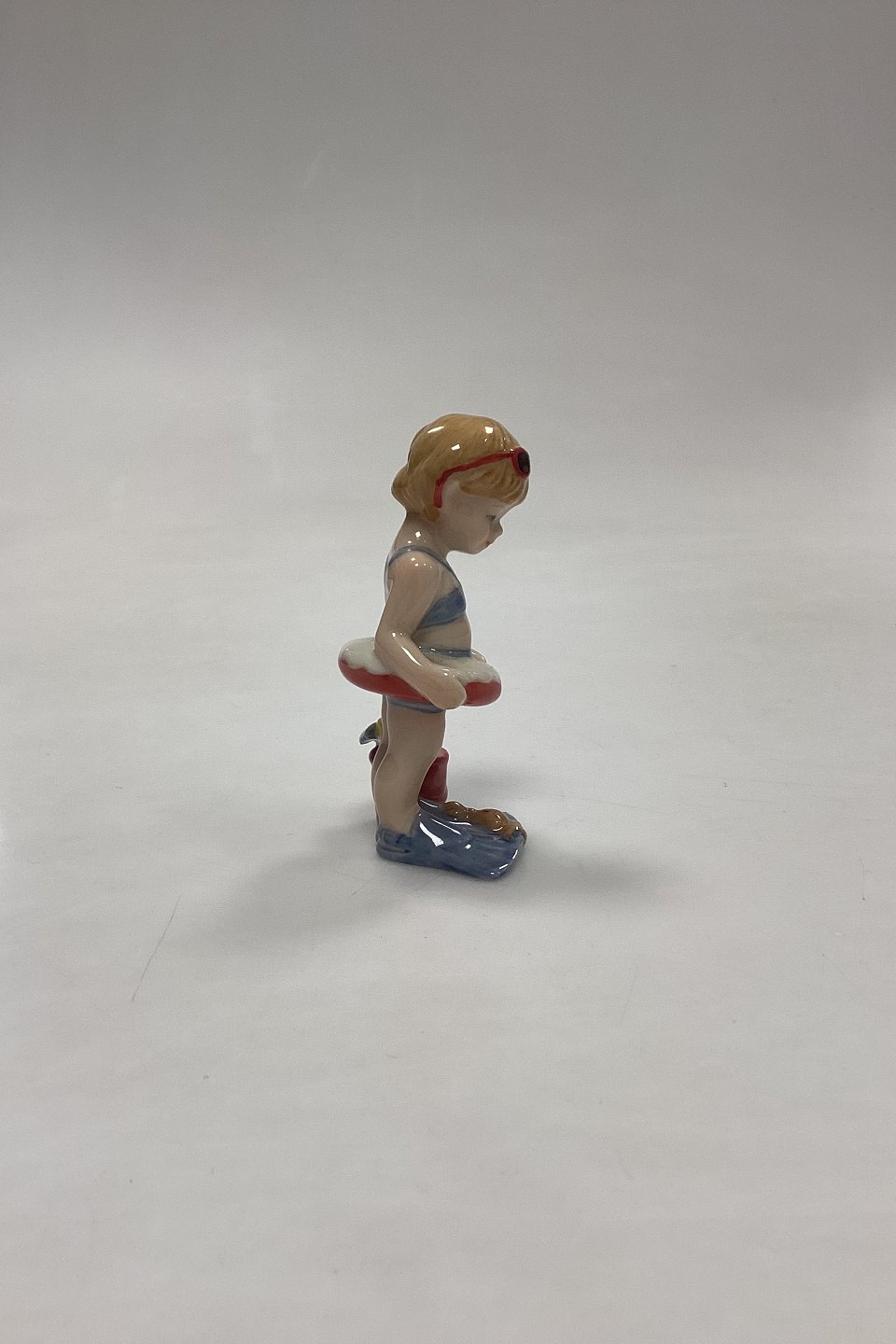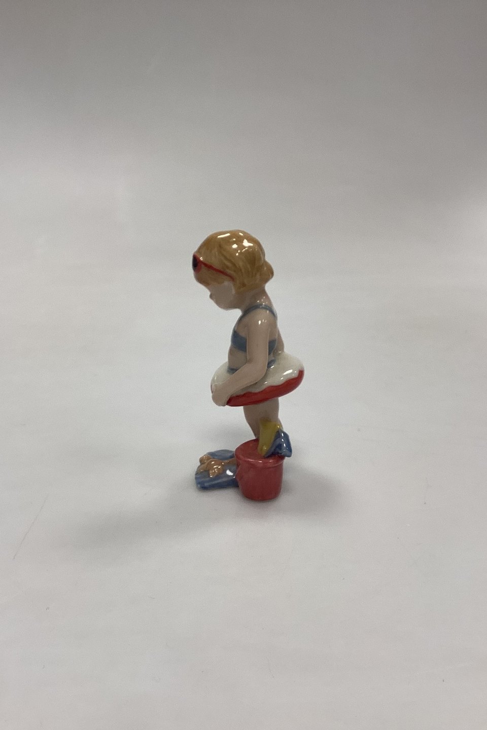Royal Copenhagen Minibørn Figur - Christina No. 012. Pige med badering, spand og svømmefødder. Designet af Sven Vestergaard.