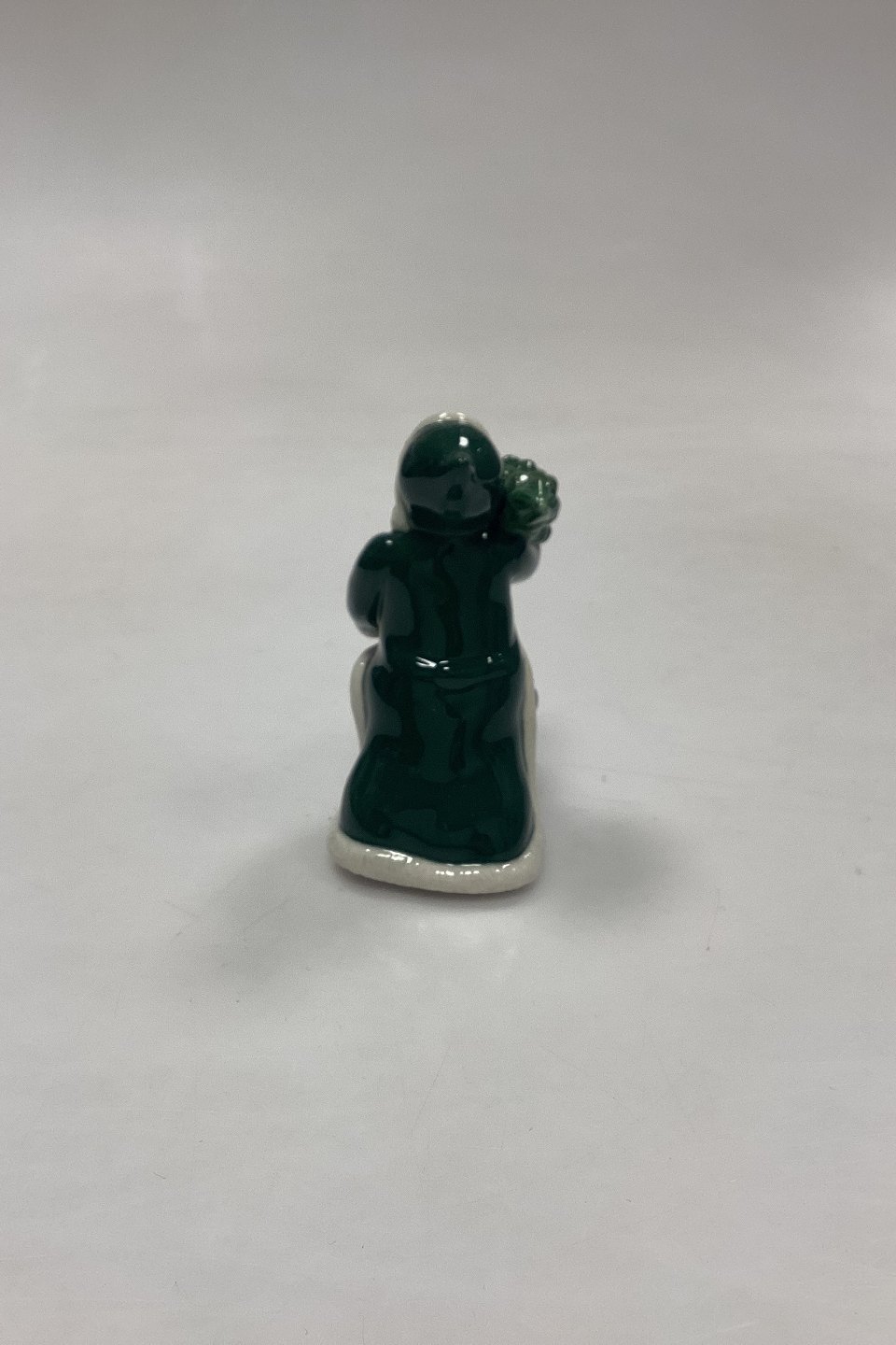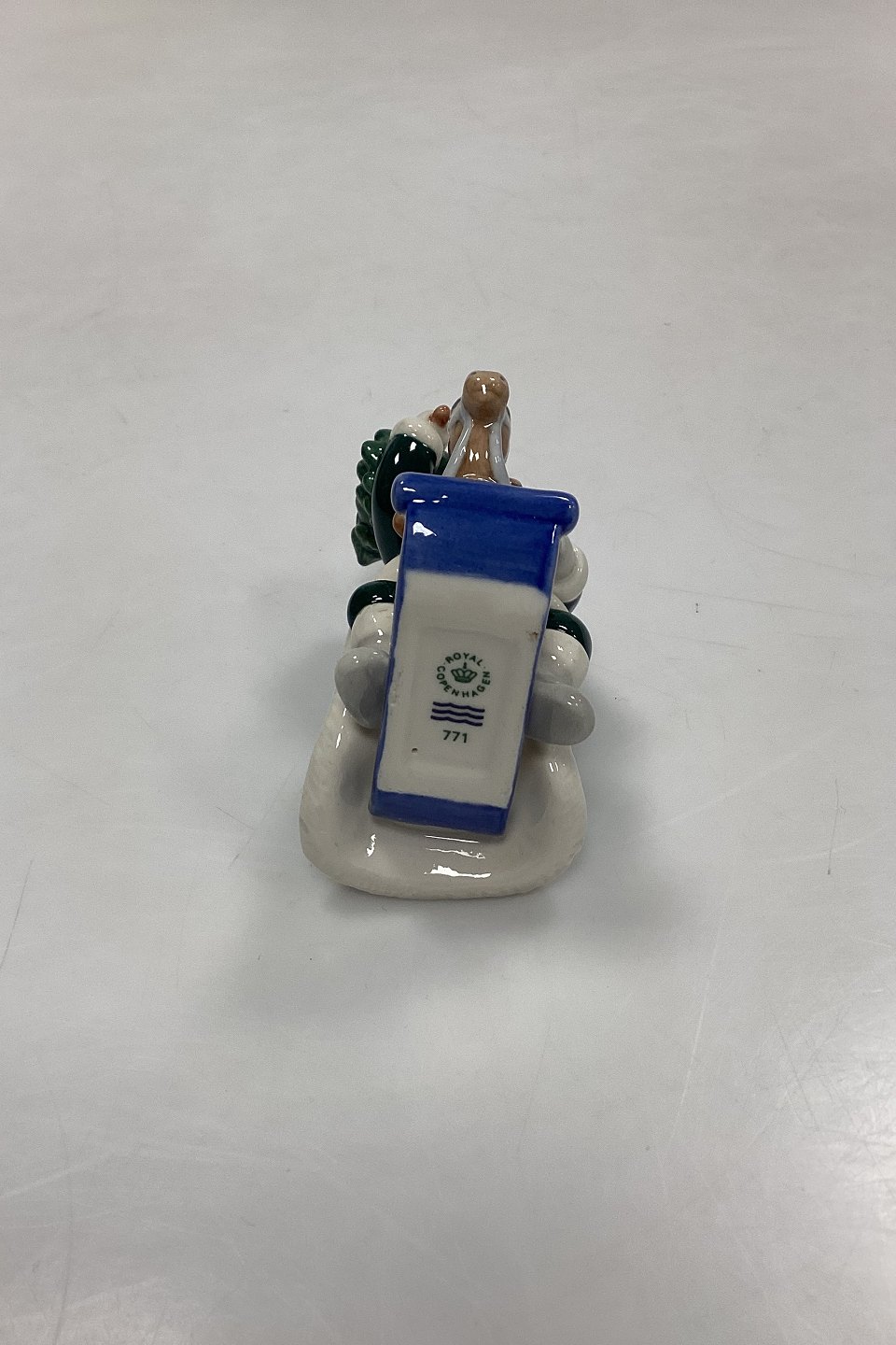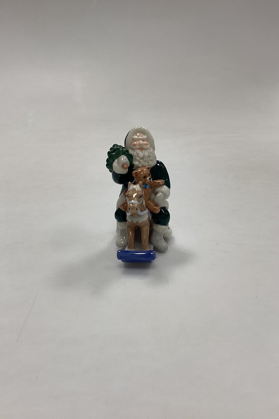 Royal Copenhagen Figur Årets Julemand 2005 No. 771. Julemanden i grønt tøj på gyngehest. Designet af Sven Vestergaard.