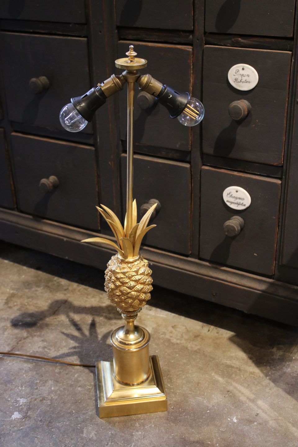 Forgyldt bronze "Ananas" bordlampe fra 70érne