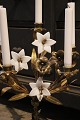 med plads til 5 stearinlys og dekoreret med 3 hvide opal glas blomster.