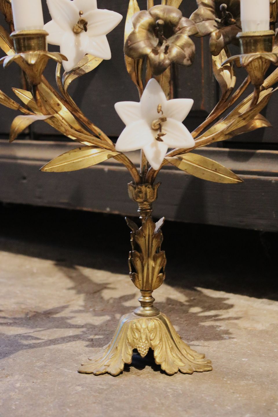 Antik, dekorativ fransk kirkelysestage i bronze fra 1800 tallet