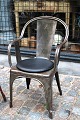 Klassisk fransk Tolix lounge stol med armlæn i afsyret, poleret og lakeret metal. Rund siddehynde i sort læder medfølger.