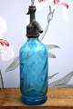 in turquoise blue with engraved writing on the side of the siphon