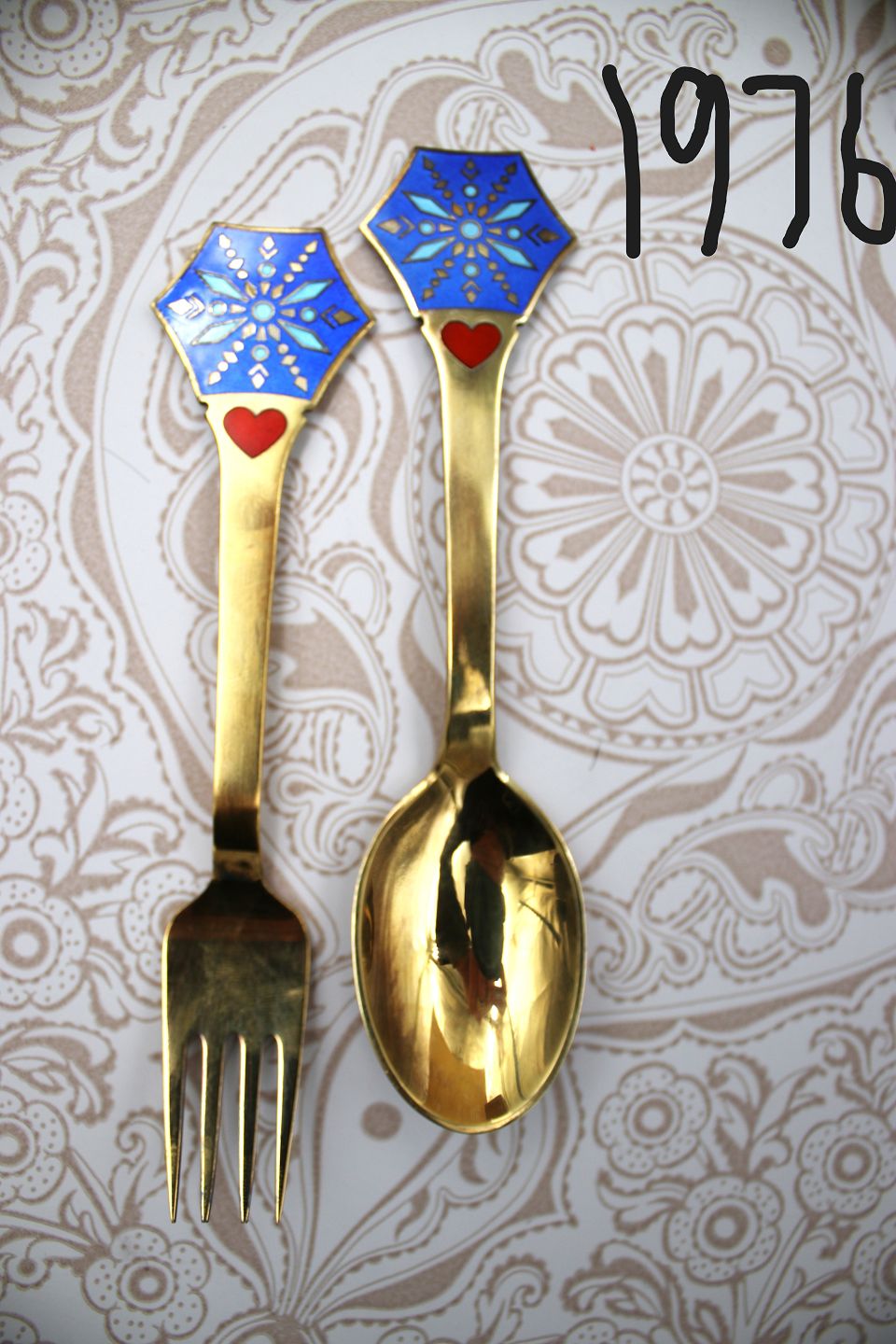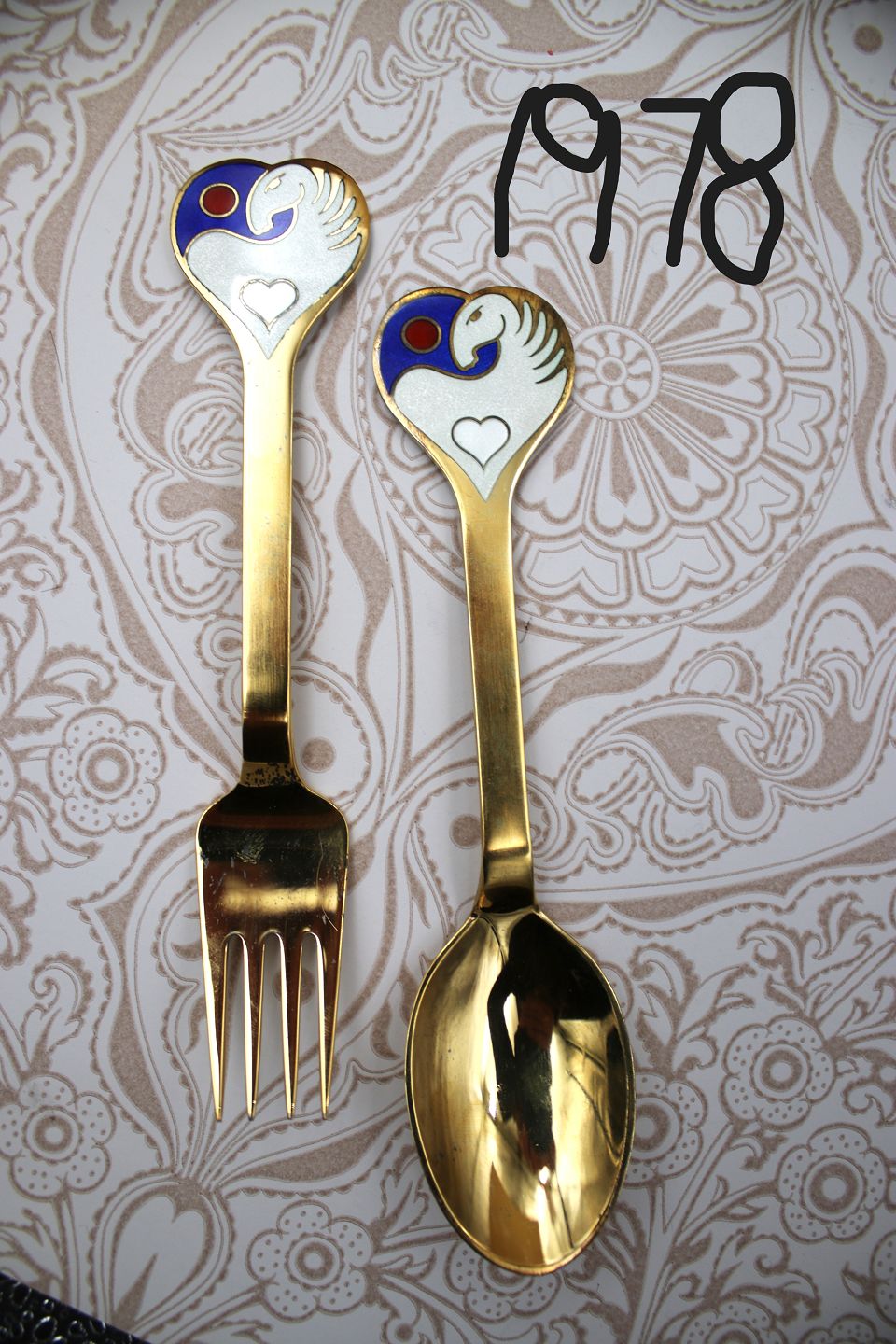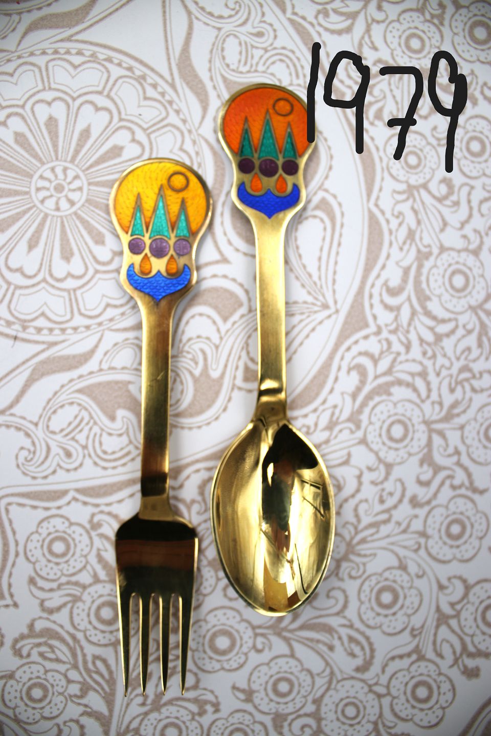 1973: Spoon - Fork, 1974: Spoon - Fork: PRICE: 600 kr. per piece. , 1975: Spoon - Fork, 1976: Spoon - Fork, 1977: Fork,