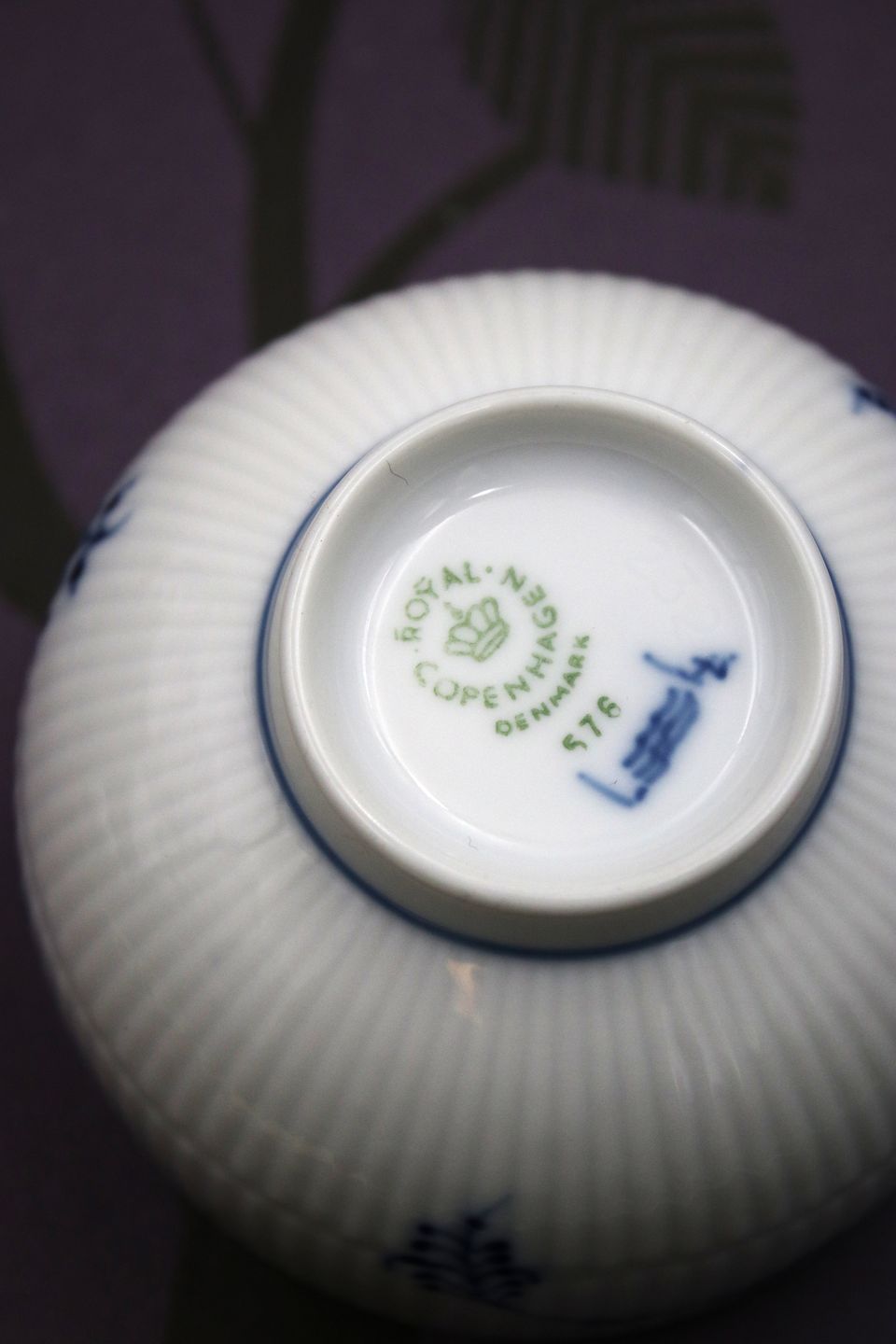 Royal Copenhagen , Musselmalet Riflet skål. Dekorationsnummer: RC576. 1.sort. H: 5,5cm. Dia.: 8,8cm. Emne nummer: RC#576.