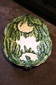 Gammelt italiensk fajance fad med salatblade og blomkåls dekorationer.