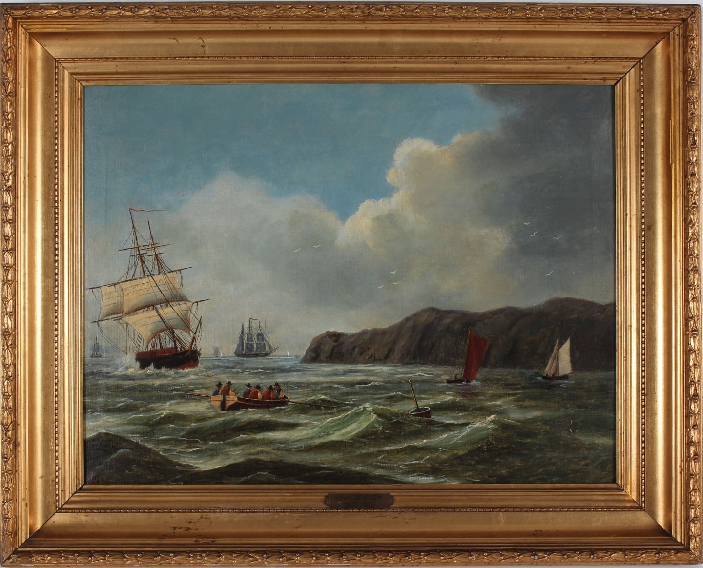 Stormy sea with numerous sailing ships