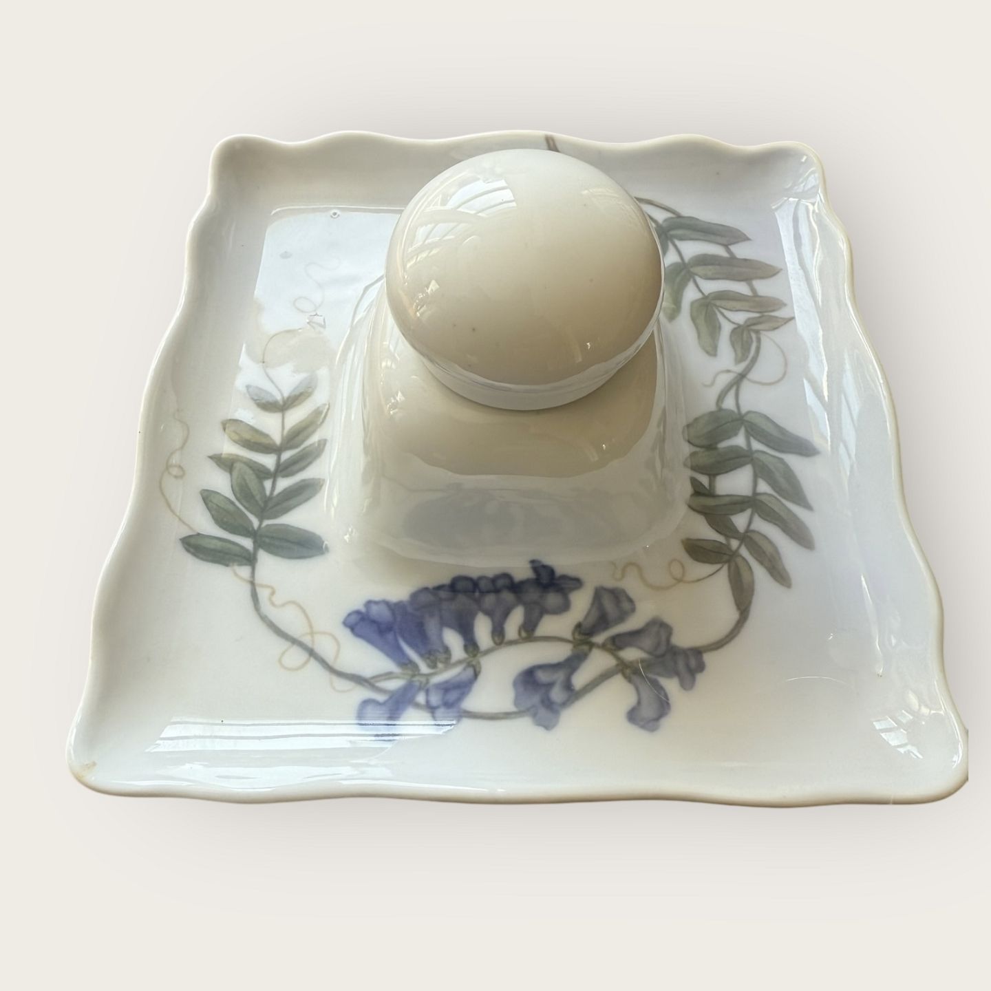 Description: Royal Copenhagen, inkwell with wisteria, Art Deco made 1898 - 1923, Fine condition. (see also item no. 609781 0g 609782 for the rest of the writing set)