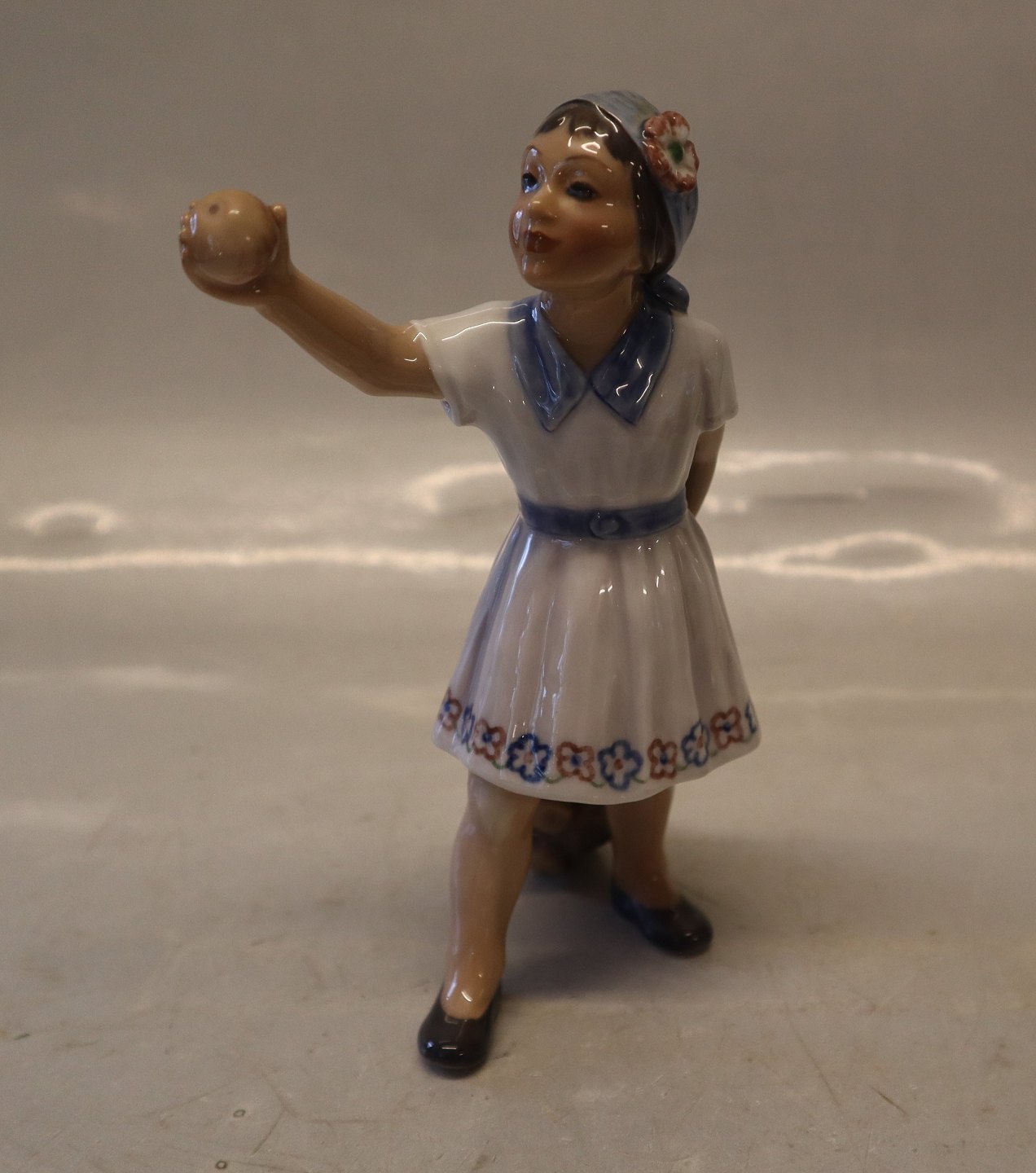 Dahl Jensen 1288 Girl with apple branch (DJ) 16 cm 1st Marked with the Royal Crown and DJ Copenhagen. In nice and mint condition Dahl Jensen Worked first for Bing & Groendahl B&G from 1897
