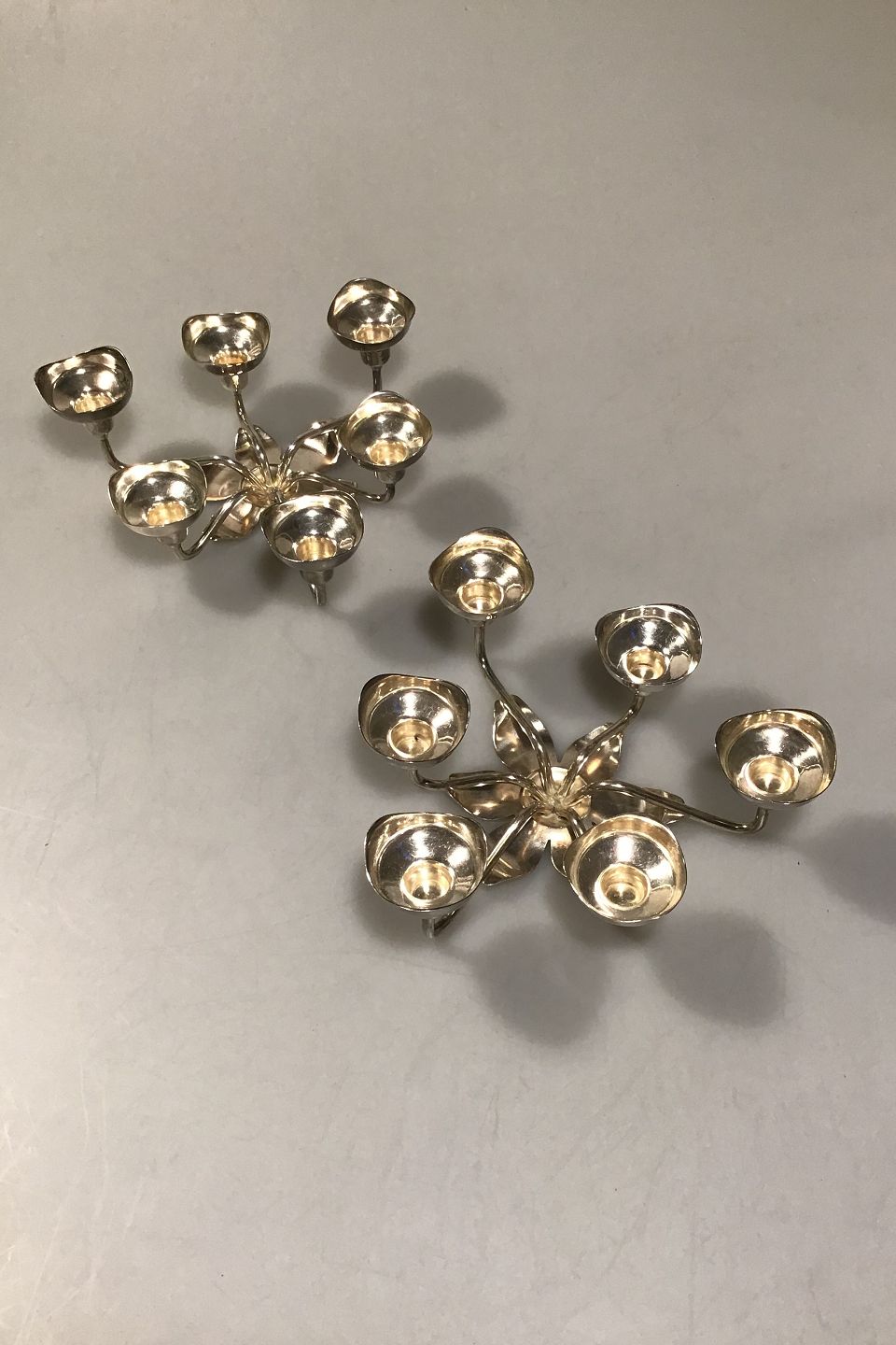 Description: Pair of Anton Michelsen Sterling Silver Candlesticks. Diam 13 cm/5.11" H 3 cm/5 cm 1.18"/1.96" Design Ibi Trier Mørch