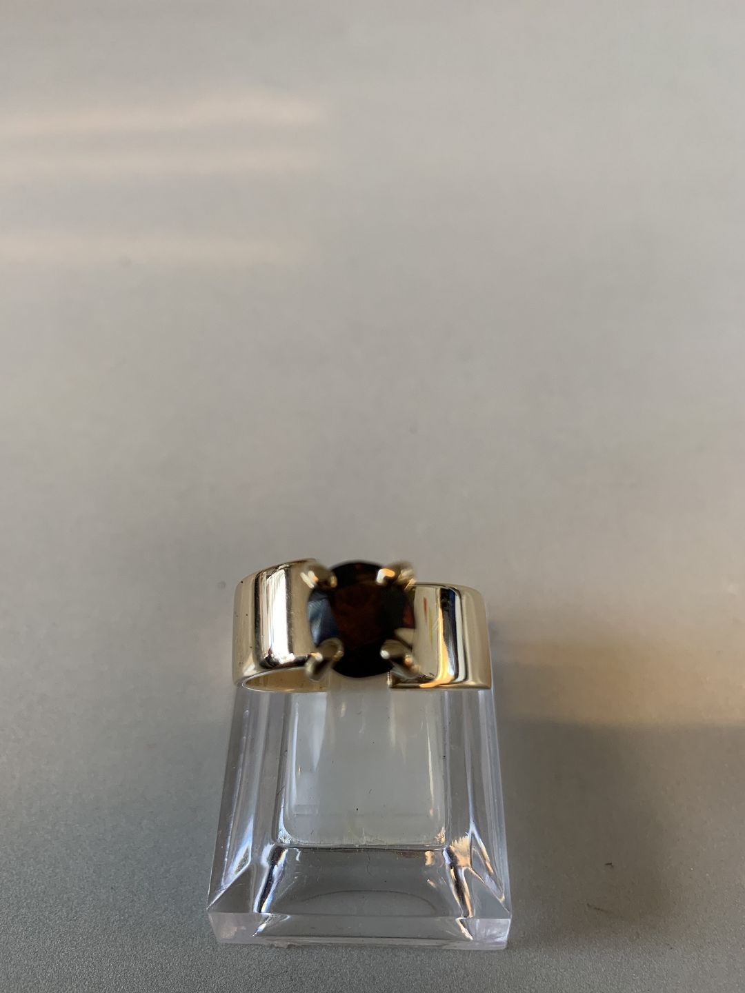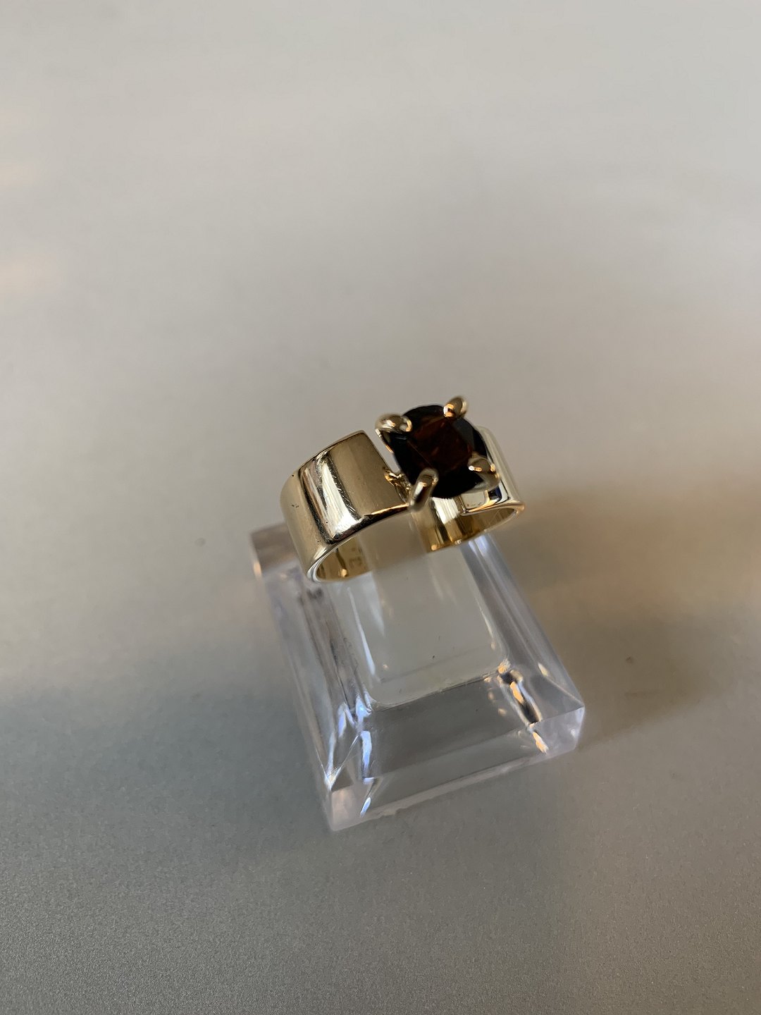Description: Ladies ring with inlaid smoke topaz in 14 Karat Gold