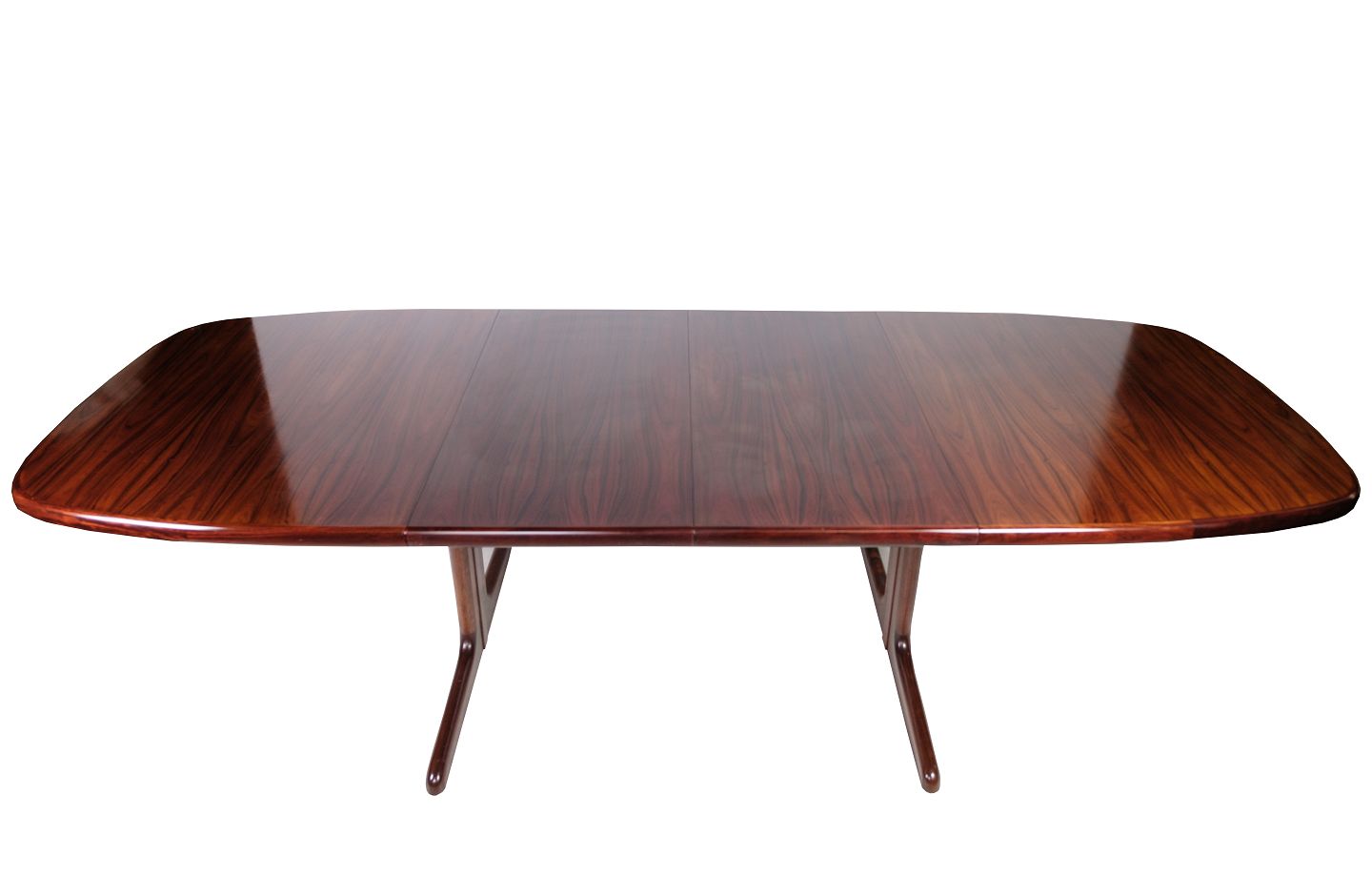 Description: This dining table in rosewood from Skovby Møbelfabrik is a beautiful example of Danish design from the 1960s. The unique structure and color variations of the table in the rosewood tree make it an elegant and timeless design. Overall, this dining table in rosewood from Skovby Møbelfabrik is a beautiful, functional and durable addition to any dining room.