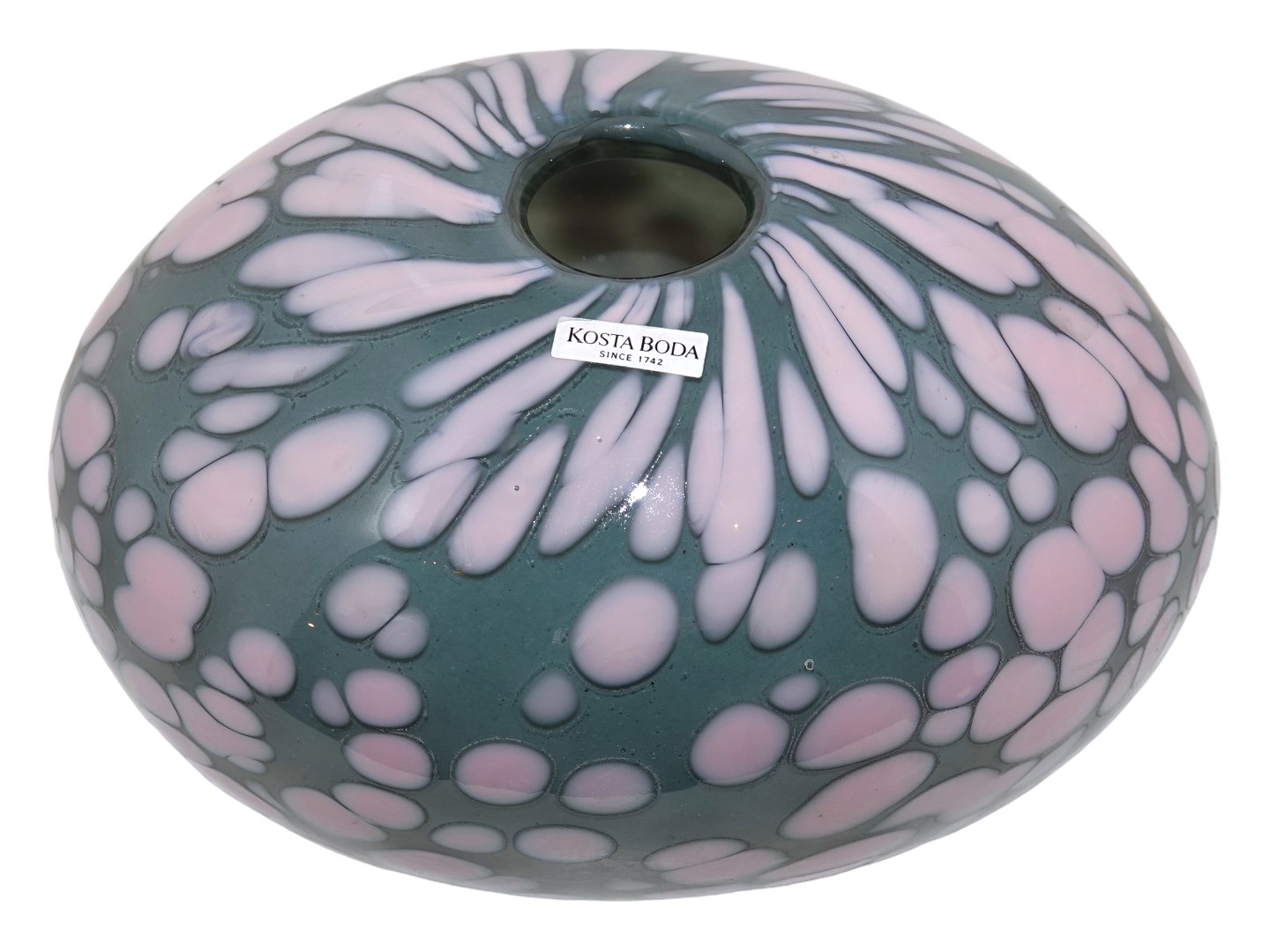 Description: Kosta Boda Sweden, test vase with pink decoration.