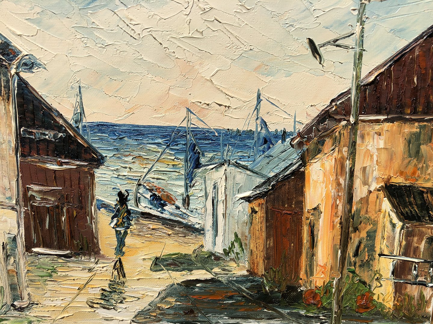 Description: Hillestrøm, Bent Bertram oil painting on canvas, Motif from Gilleleje Harbour. Dimensions with frame: 32x26 cm.
