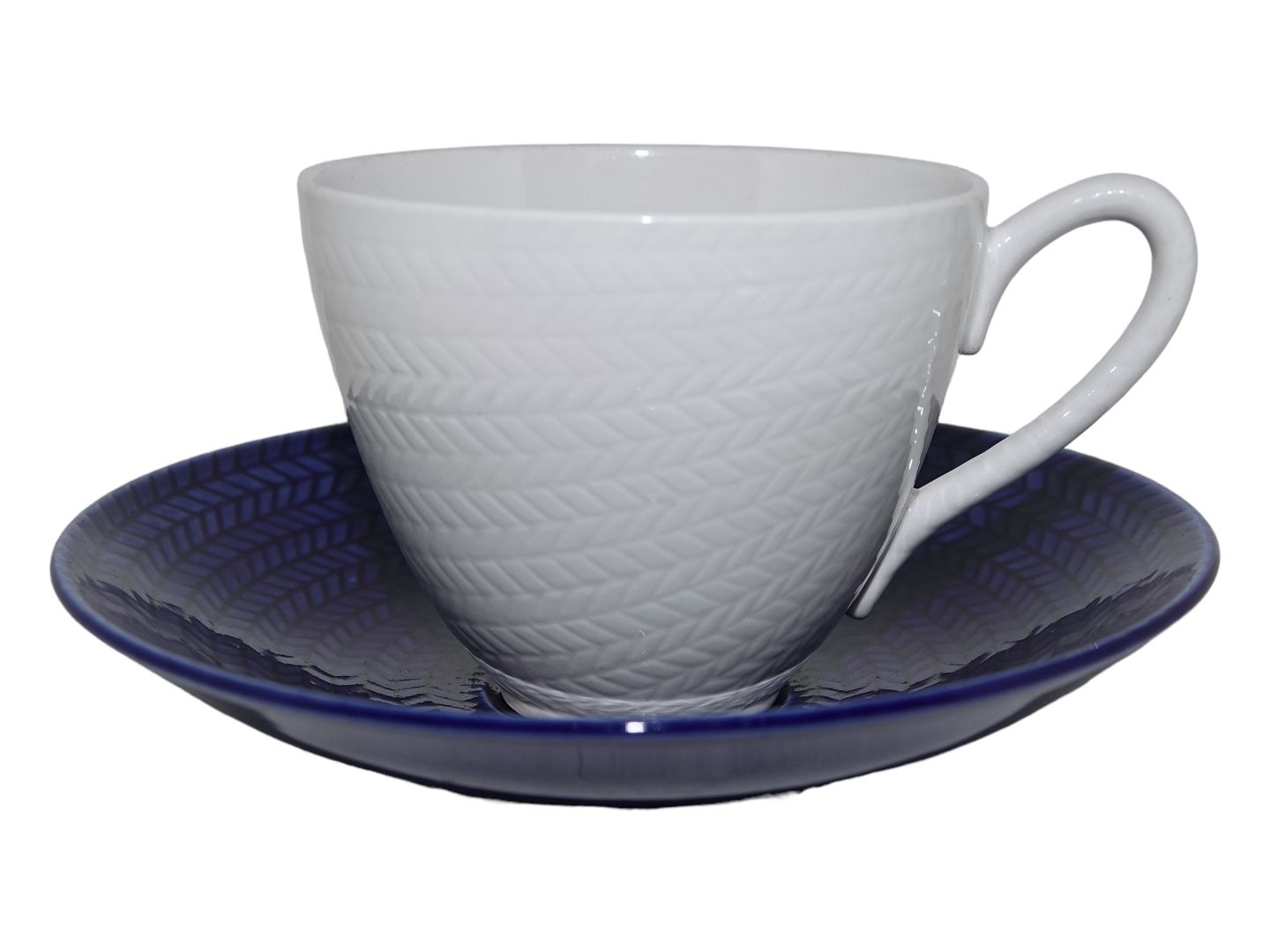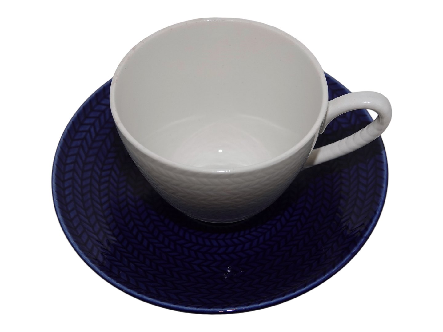 Beskrivelse: Rörstrand (Rørstrand) Blå Ild (Blå Eld), tekop med tilhørende underkop.