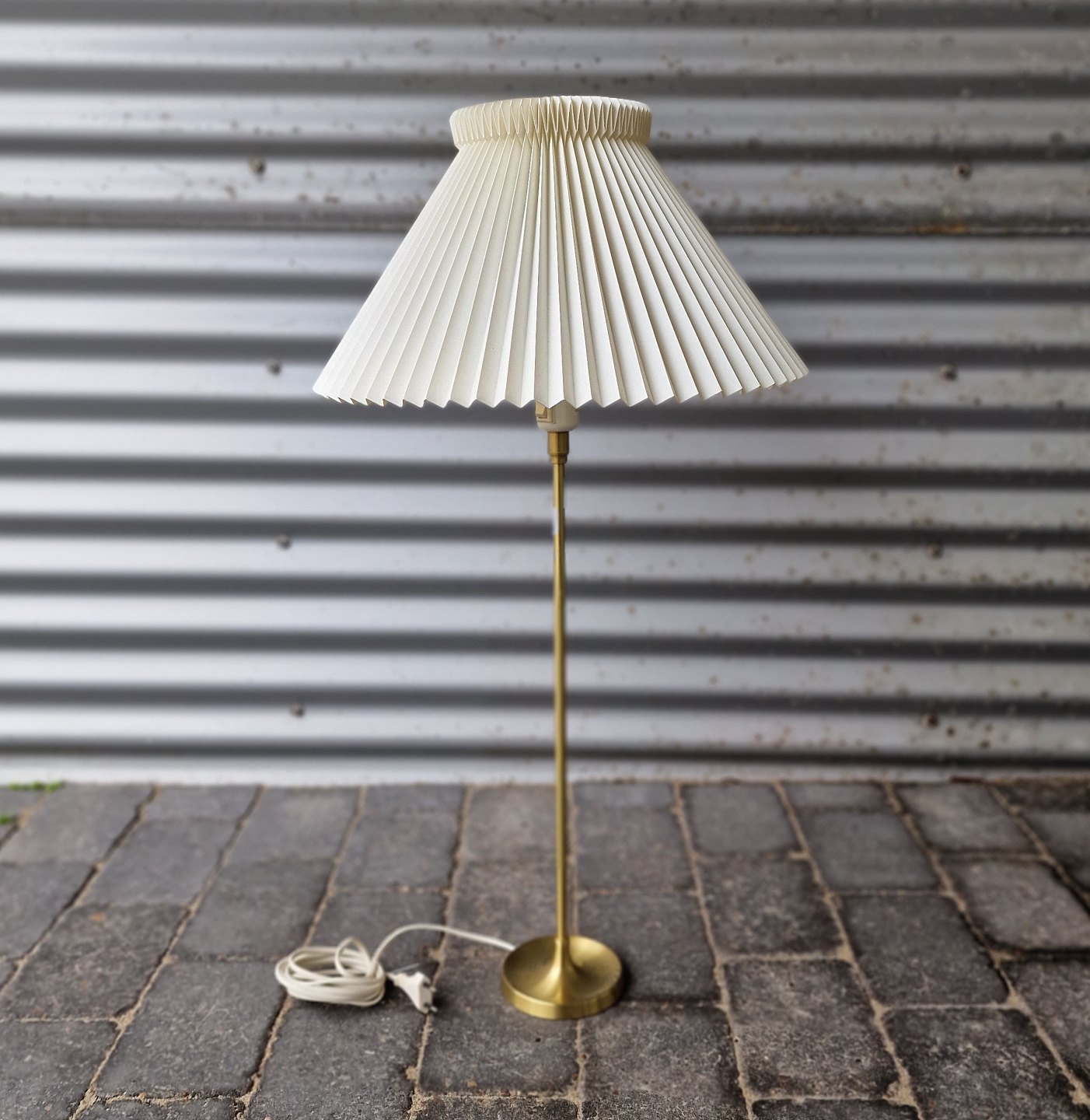 Beskrivelse: Messing bordlampe med hvid plisseret Le Klint skærm. Model 307/8