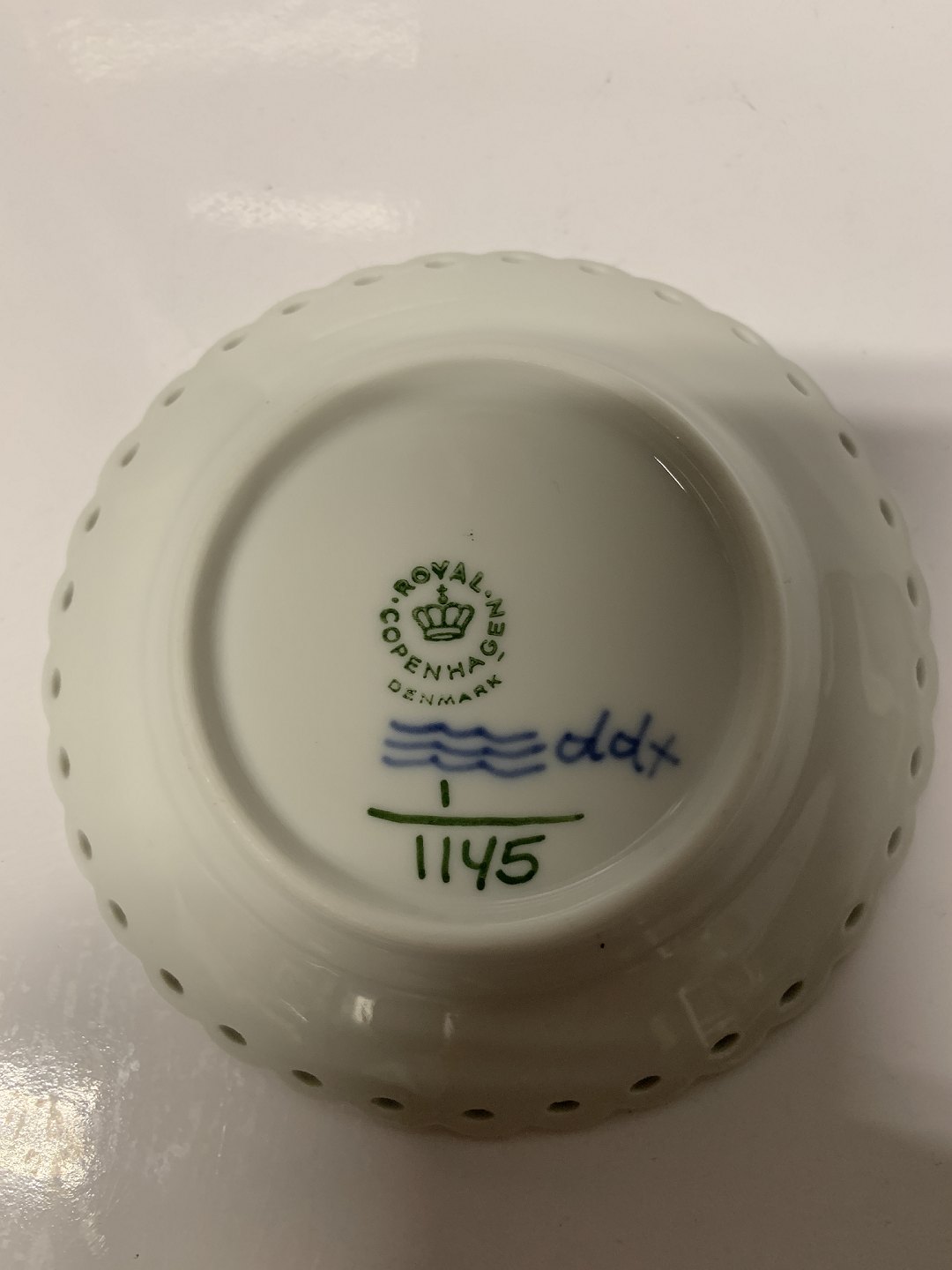 Description: Royal Copenhagen Blue Fluted Full Lace, small asiet.