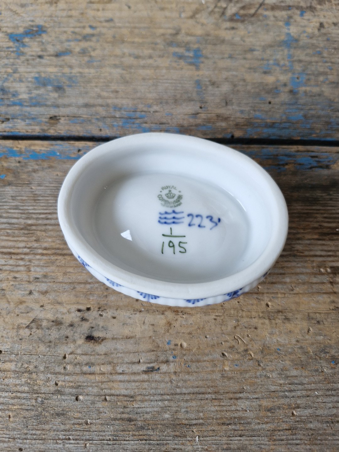 Royal Copenhagen Musselmalet riflet saltkar no. 195