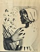 Beskrivelse: Indrammet tryk i sort ramme med motiv af en pige med neg