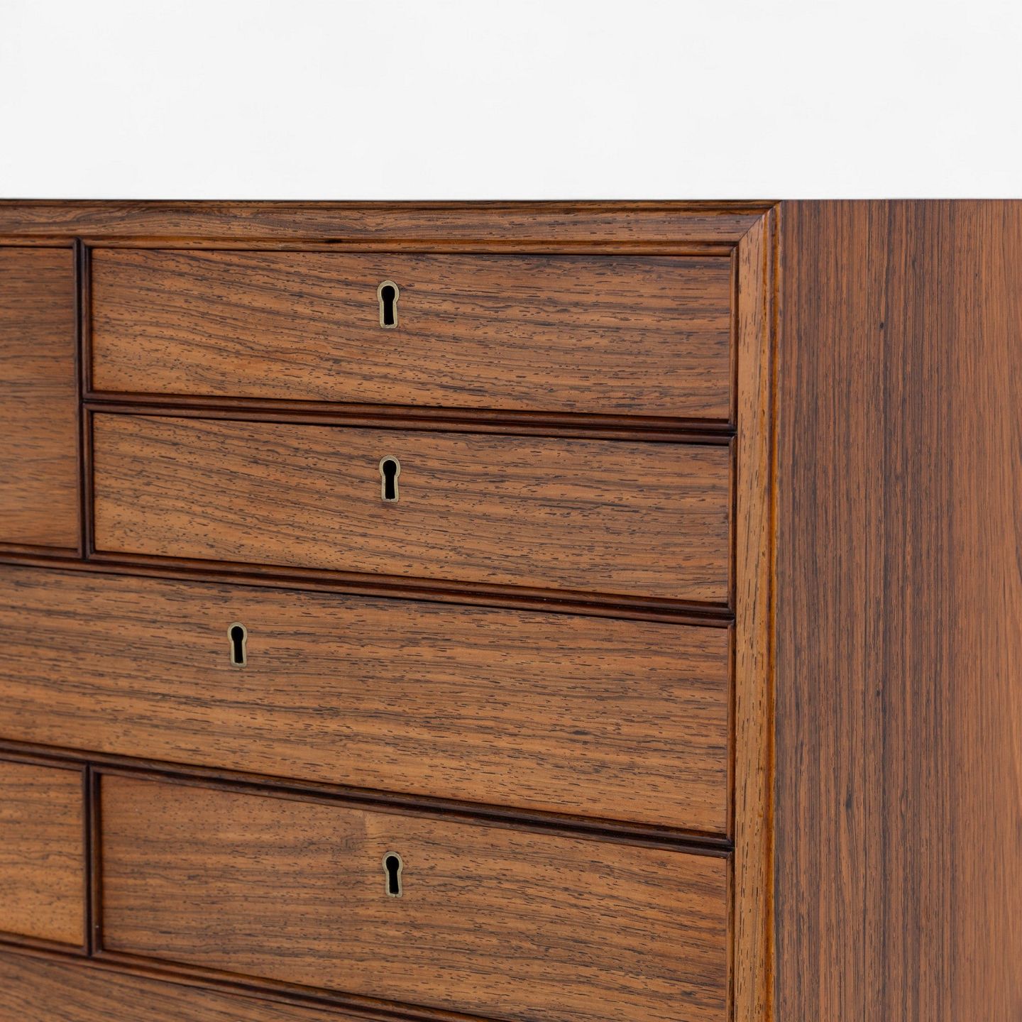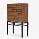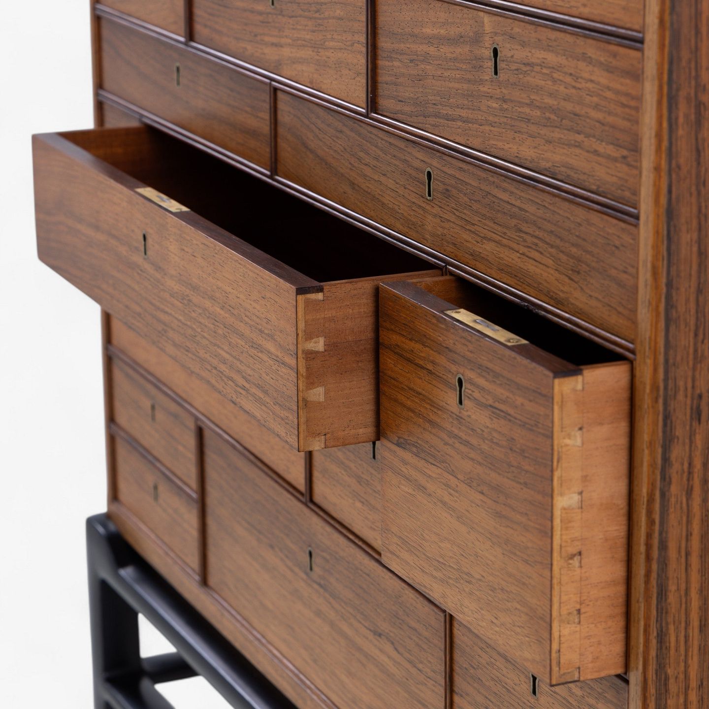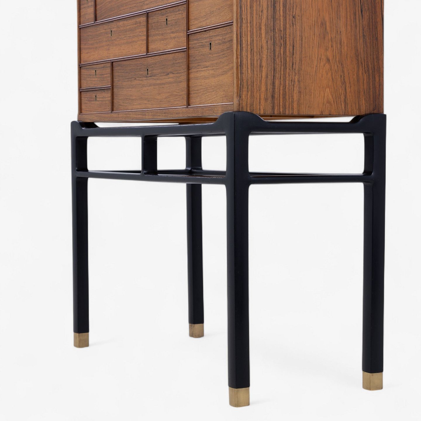 Rare cabinet in rosewood with drawers and black lacquered frame with brass shoes.