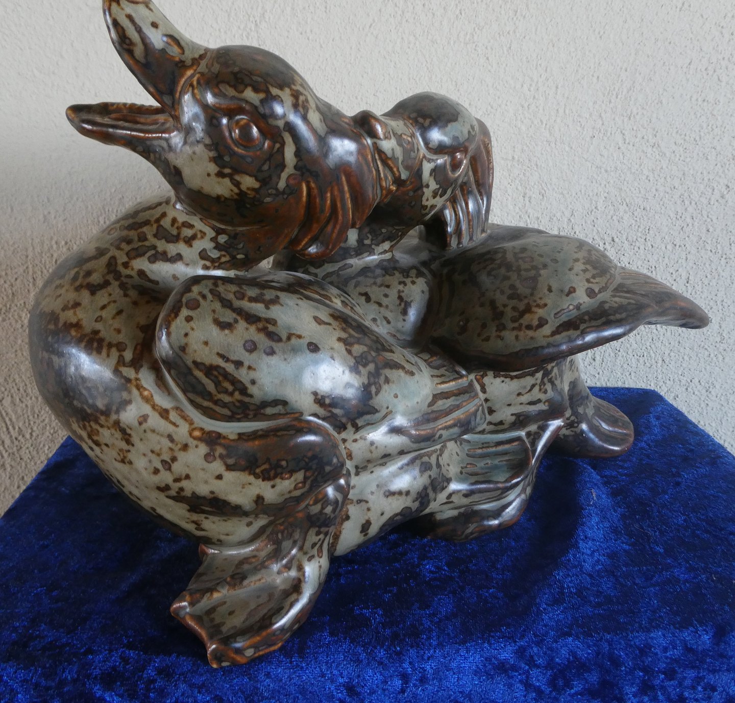 2 ænder uden Nummer. En stor og flot figur i rigtig pæn stand. Originalt nummer 20281 og med Knud Kyhn's initialer.