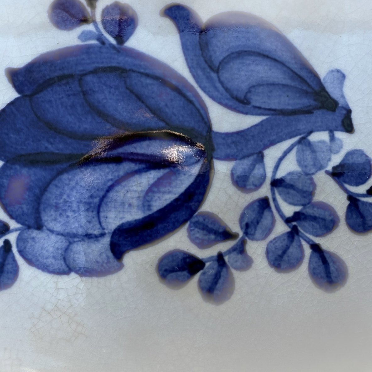 Beskrivelse: Royal Copenhagen, Trankebar, Kabaretfad #11/ 1432, 27cm i diameter, 10cm høj, Design Christian Joachim *Lidt meget svage krakeleringer under glasuren ellers pæn stand*