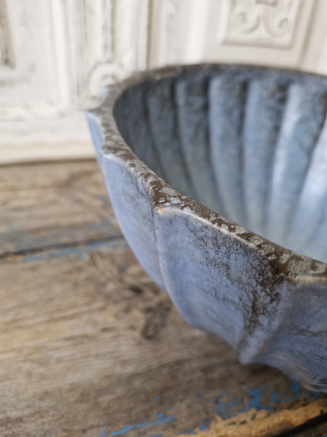 Beskrivelse: Michael Andersen stor riflet skål med smuk blå glasur