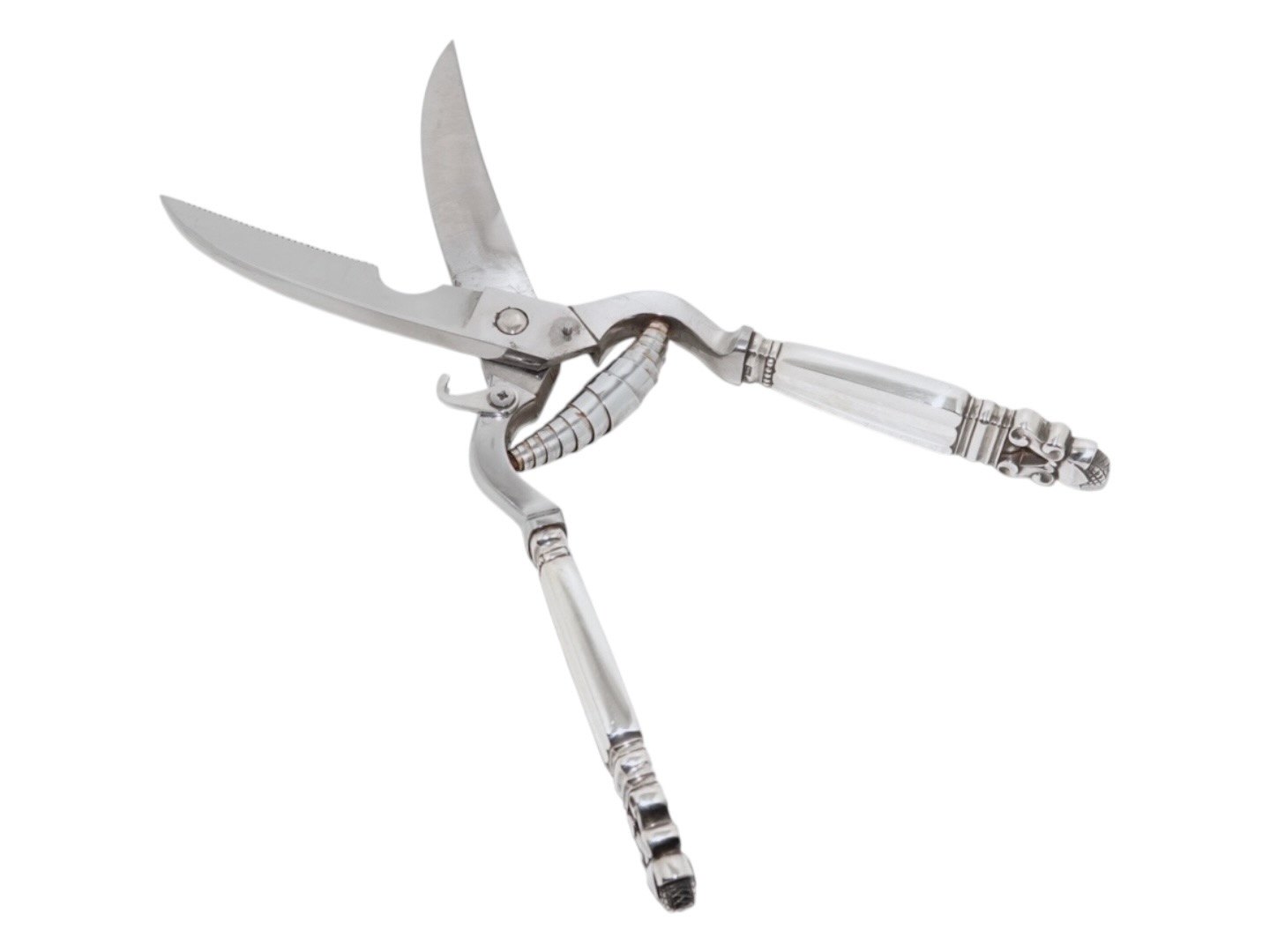 Beskrivelse: Georg Jensen Konge sterlingsølv og rustfrit stål, fjerkræsaks.