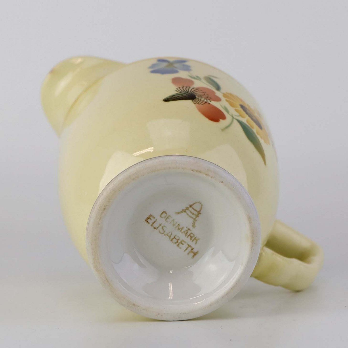 Beskrivelse: Kande til fløde i fajance fra stellet Elisabeth.