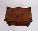 Et dekorativt og anvendeligt antikt møbel, der kombinerer praktisk opbevaring med klassisk snedkerhåndværk.