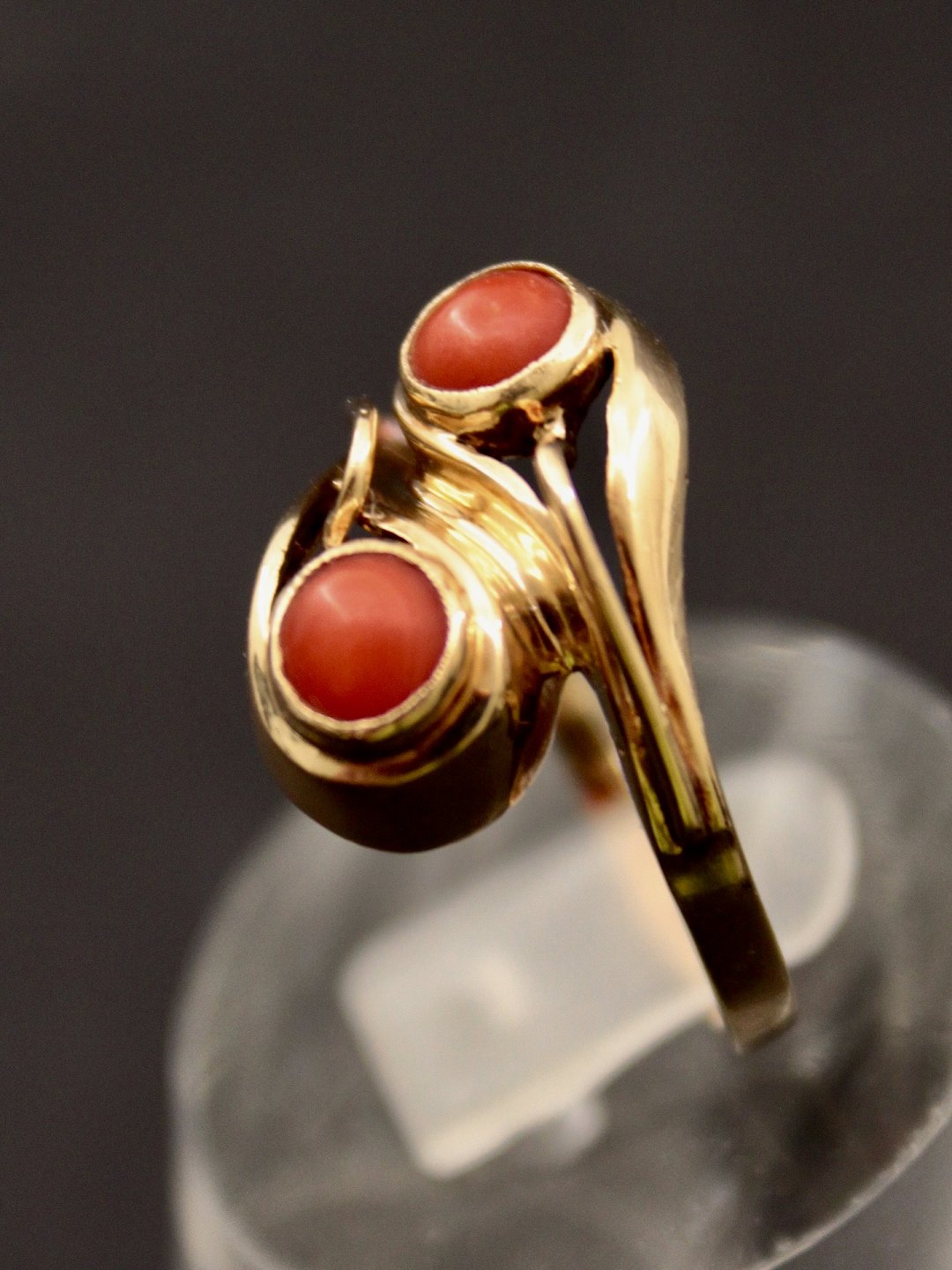 Beskrivelse: 14 karat guld ring størrelse 56 med koraller Stemplet 585 BLD for guldsmed Bent Larsen Ejby emne nr. 621628