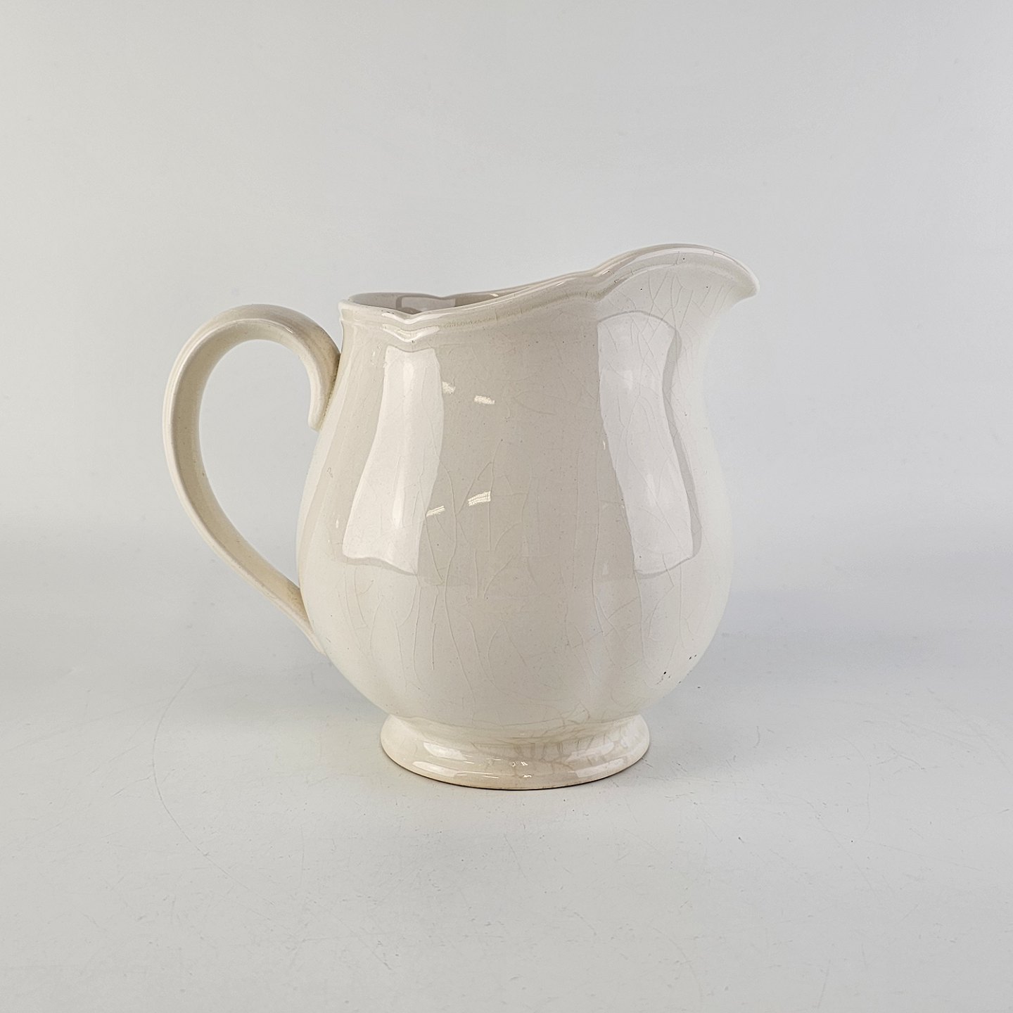 Beskrivelse: Mælkekande i cremefarvet fajance fra stellet Alma