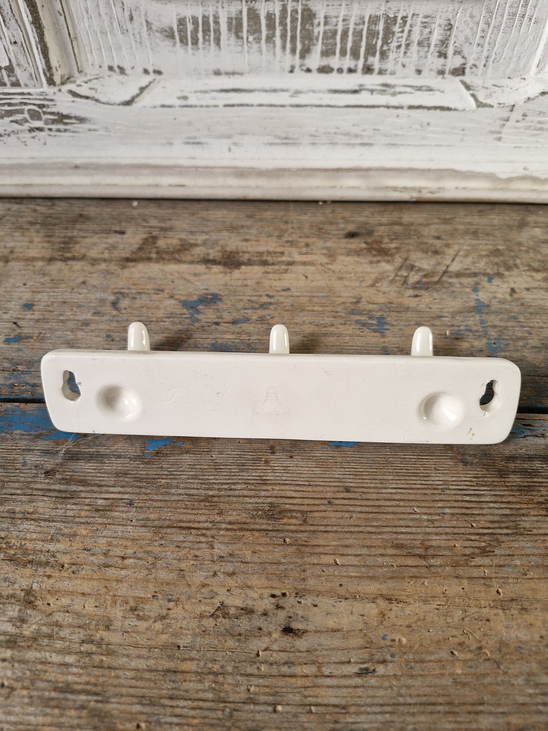 Beskrivelse: Aluminia cremefarvet fajance knagerække med 3 kroge