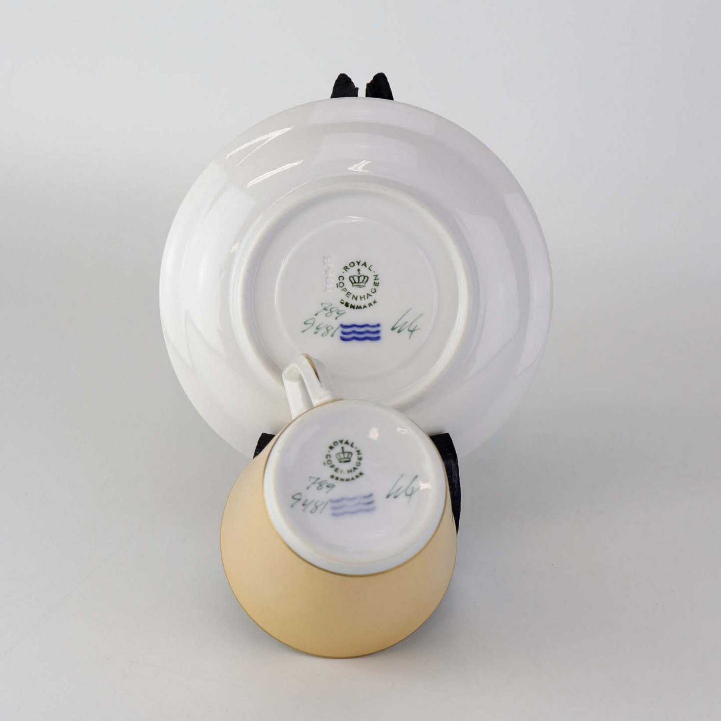 Beskrivelse: Kongelig kaffekop med underkop i porcelæn fra stellet Bernstorff. Nr. 789/9481
