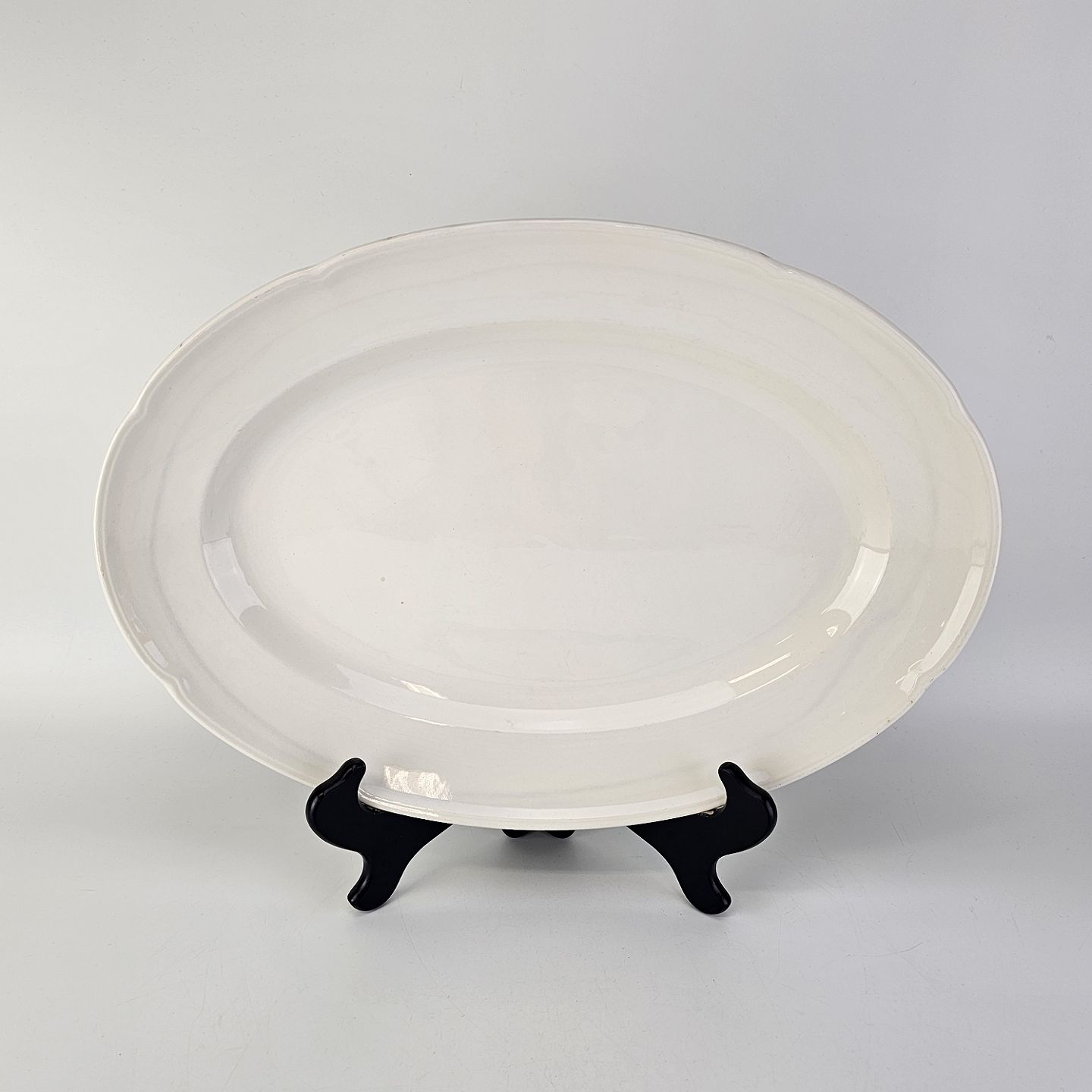 Beskrivelse: Mellem størrelse ovalt fad i cremefarvet fajance fra stellet Alma