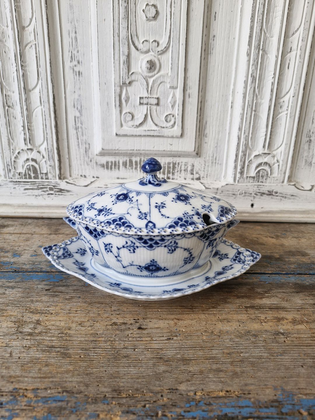 Royal Copenhagen Musselmalet helblonde sauceskål med låg no. 1106