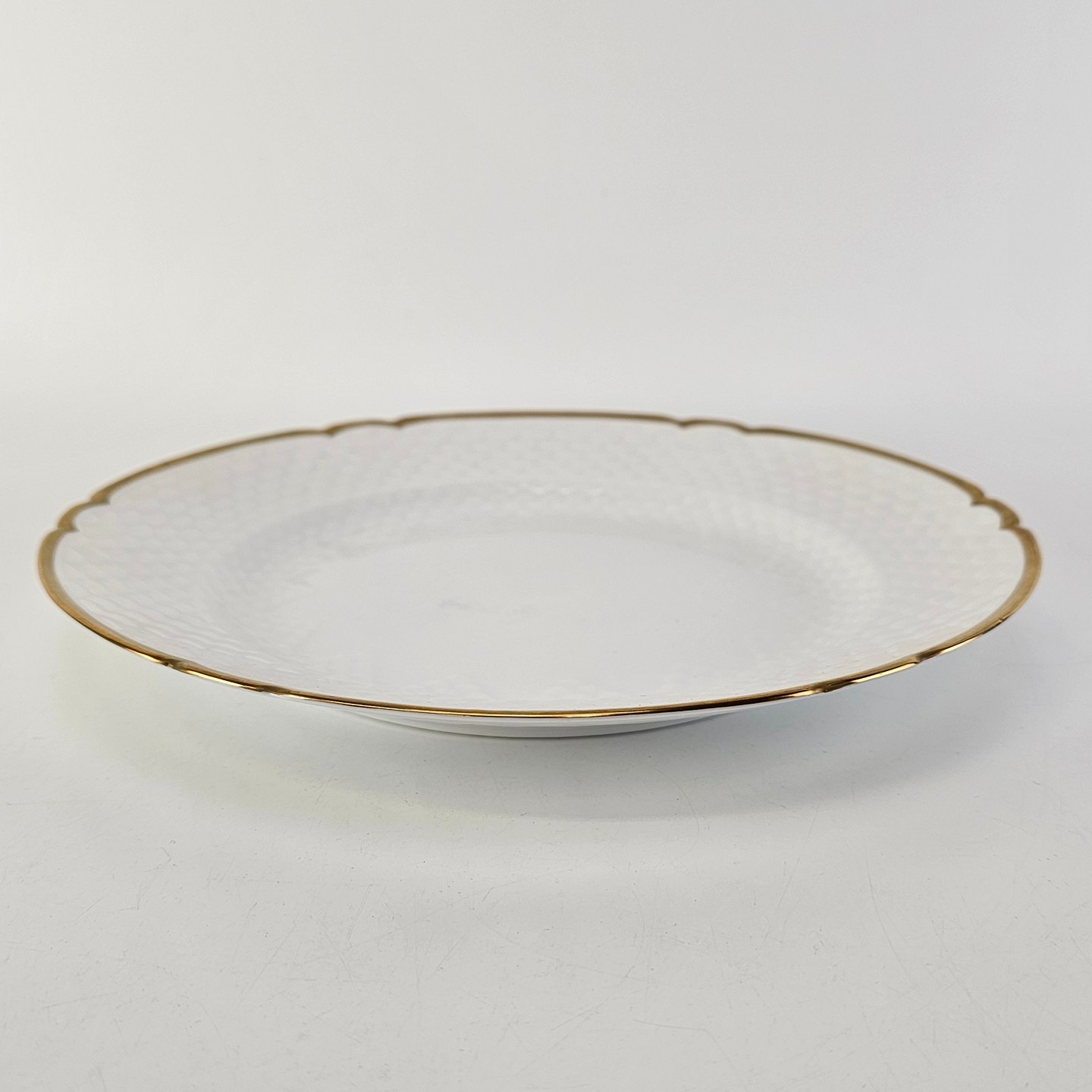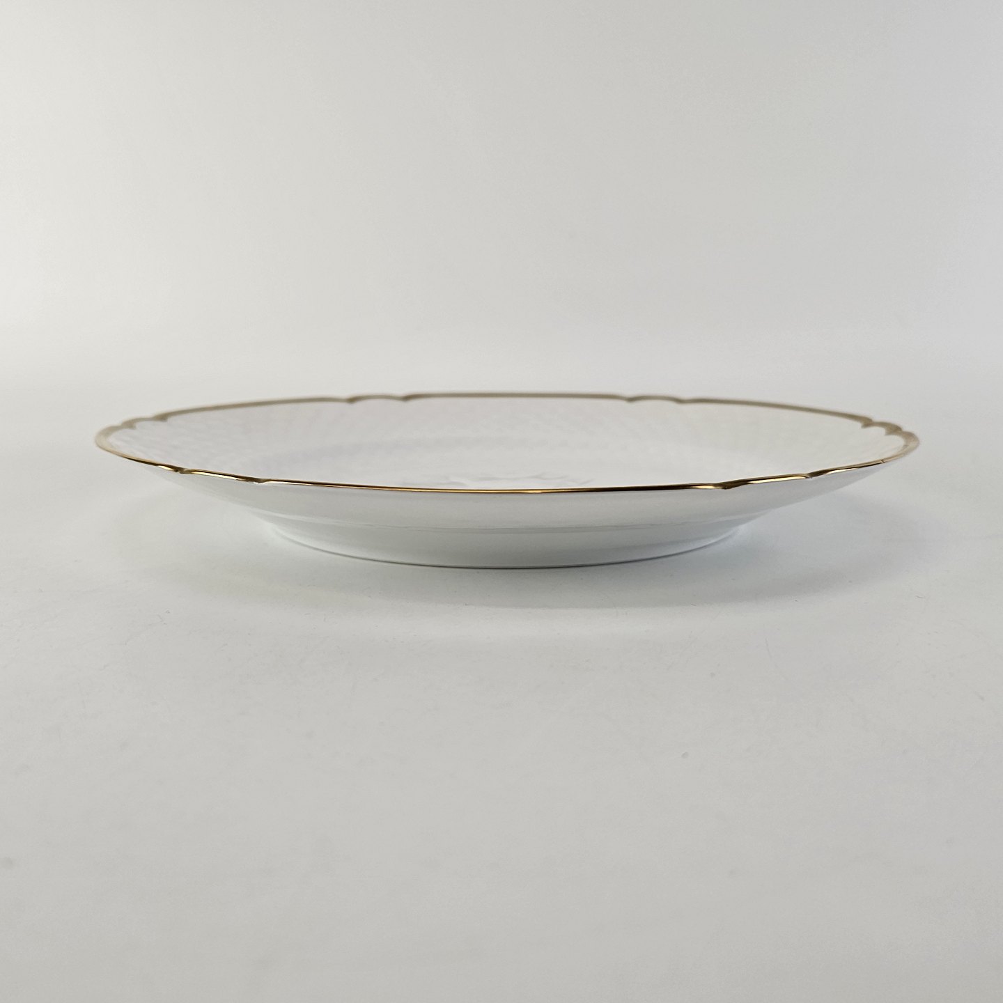 Hostrup er hvidt porcelæn i skælform med guldkant