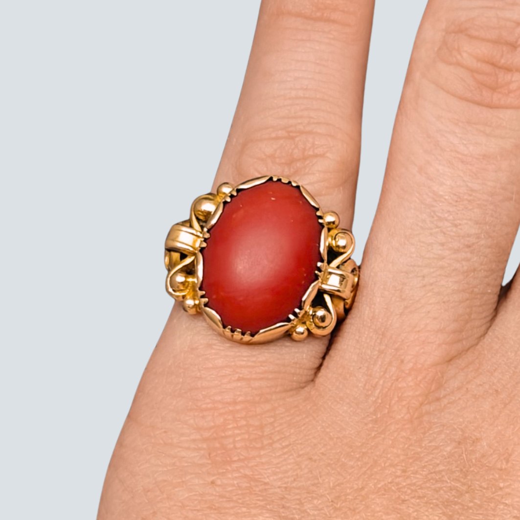 Ring i 14 kt. guld med koral, fra omkring 1920.