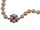 Beskrivelse: Lang perlekæde af store creme-farvet Akoya perler fra Japan. Akoya perler er regnet af nogle af de bedste perler blandt andet på grund af en general højere kvalitet, en rundere form og en flot skinnende overflade.
